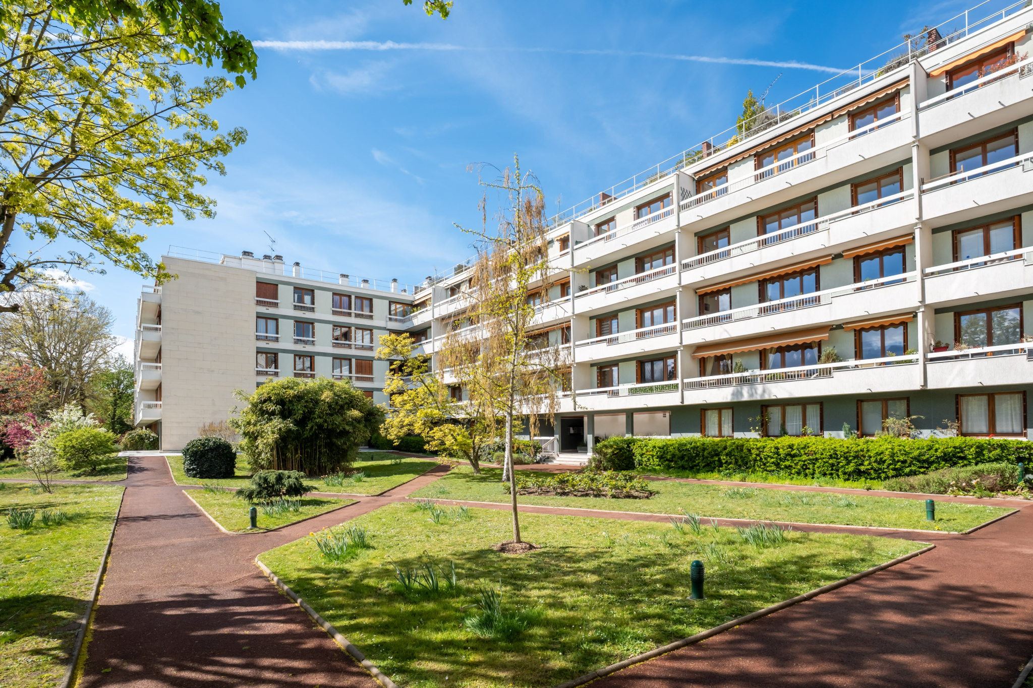 EXCLUSIVITE. A VENDRE PAR L'AGENCE LORIN. À proximité immédiate du Vésinet, à seulement 14 minutes à pied du RER, dans un environnement calme et verdoyant, bel appartement de 82 m2 situé au sein d'une résidence sécurisée en pierre de taille avec ascenseur et parc arboré. L'appartement se compose d'une entrée avec rangements, d'un séjour lumineux ouvrant sur un balcon exposé plein sud, d'une cuisine semi-ouverte entièrement équipée, de toilettes séparées, d'un dégagement avec deux dressings, de deux chambres ainsi que d'une salle de bains. À l'étage, une pièce palière donne accès à une magnifique terrasse de 21 m2, sans aucun vis-à-vis et idéalement exposée sud avec une imprenable sur la défense et la tour eiffel, offrant un véritable espace de détente en toute intimité. Une cave et un box complètent l'ensemble.Détails :