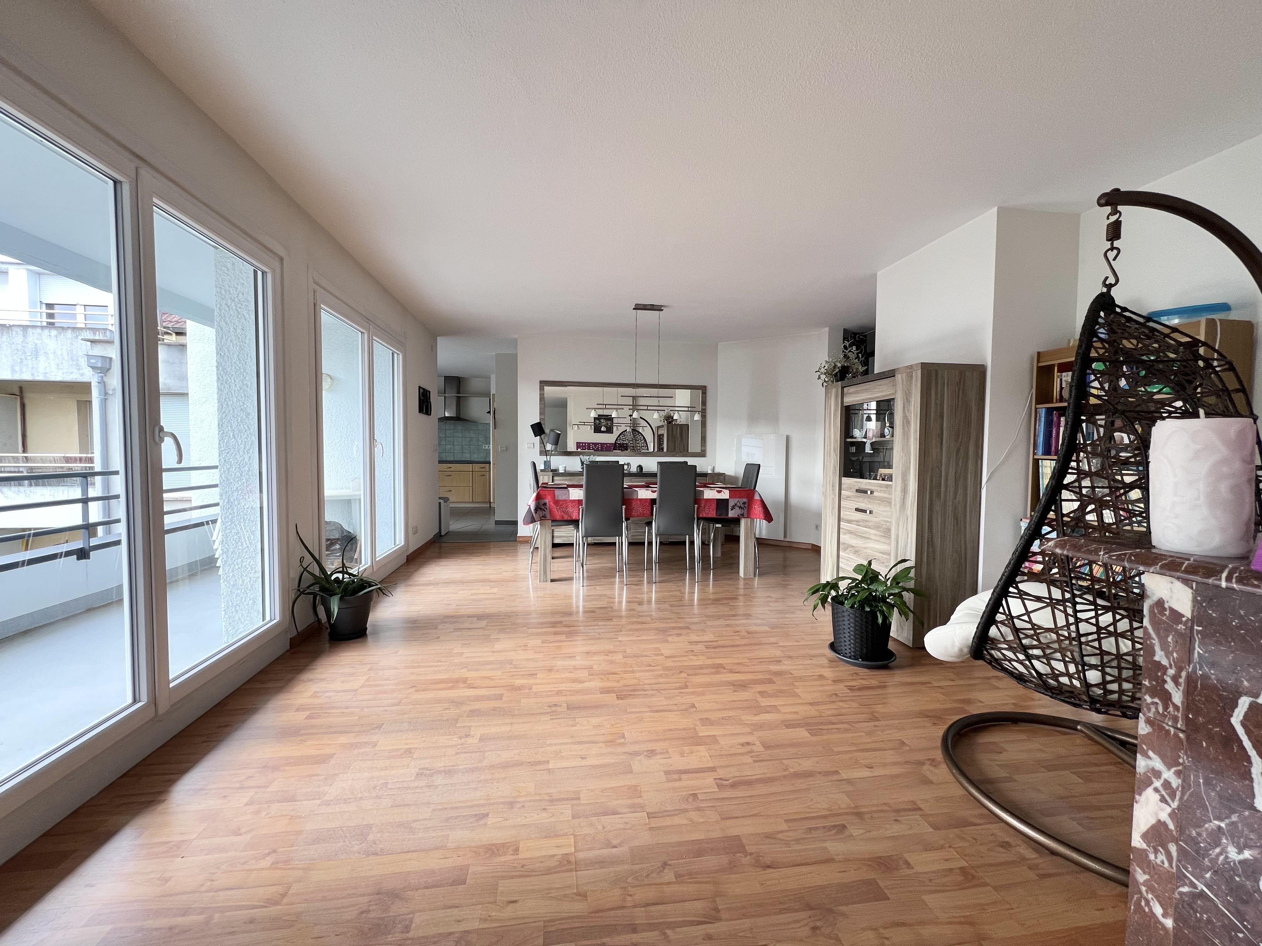Quartier Saint-Louis-la-Chaussée (68300), dans un environnement pratique au quotidien, à proximité immédiate des écoles et des commerces, cet appartement de 126 m² se situe au 2? étage d'une copropriété bien entretenue.Il se compose d'une entrée qui distribue un séjour d'environ 53 m², lumineux, où les volumes s'organisent avec fluidité.