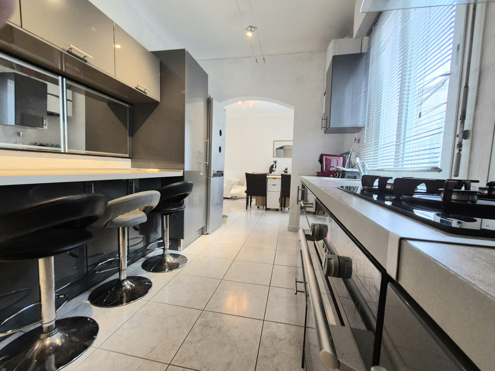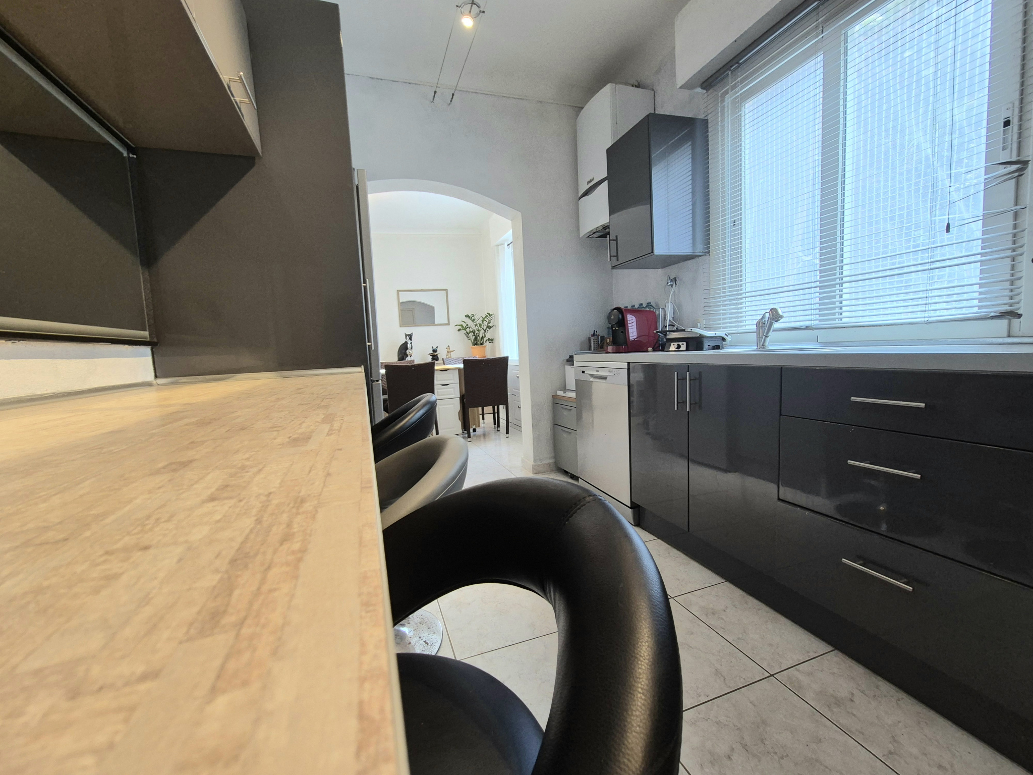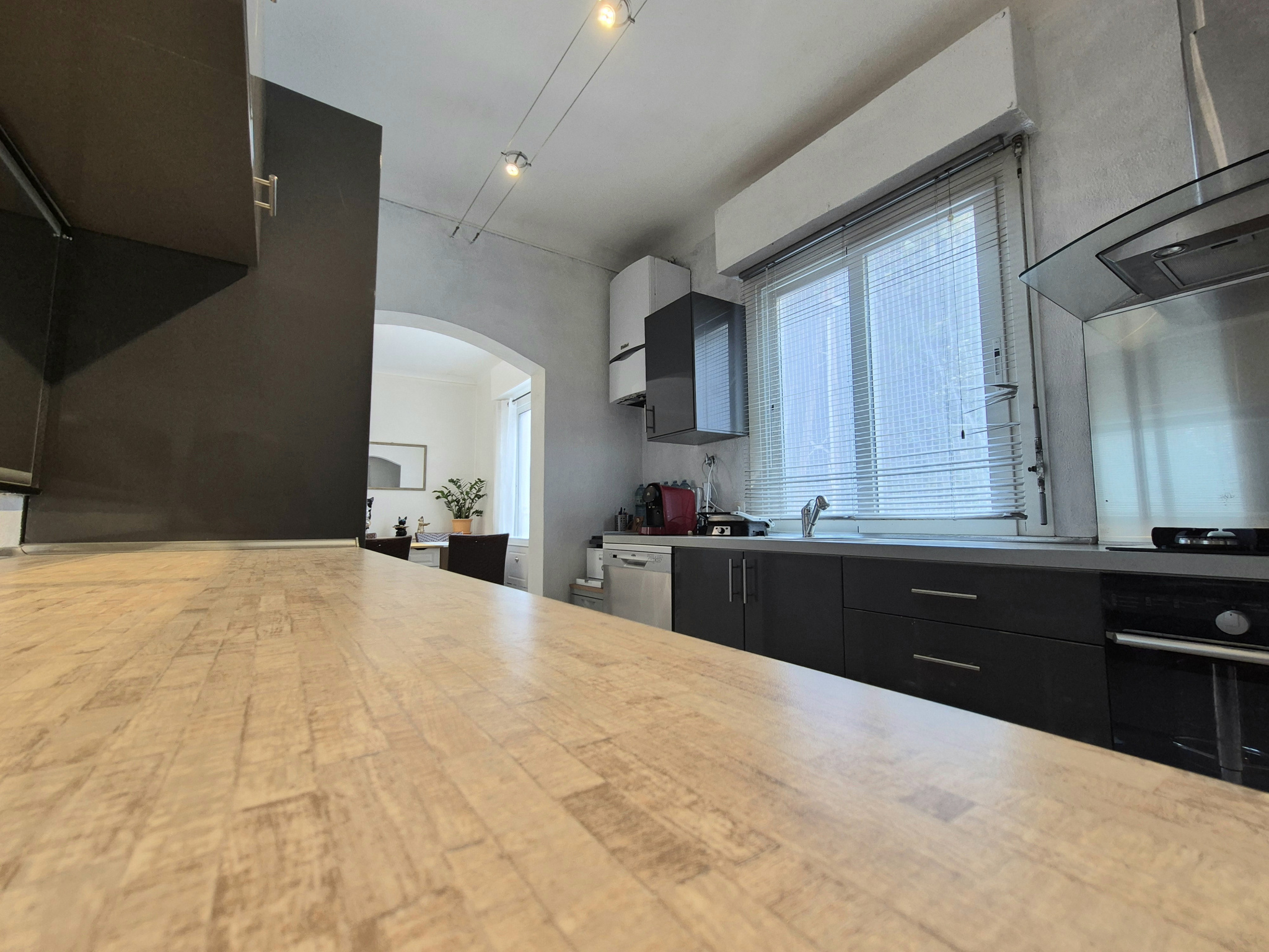 Nous sommes en rez de chaussée sur-élevé d'une petite copropriété. A noter le calme, proche du centre ville. stationnement public gratuit dans cette rue.