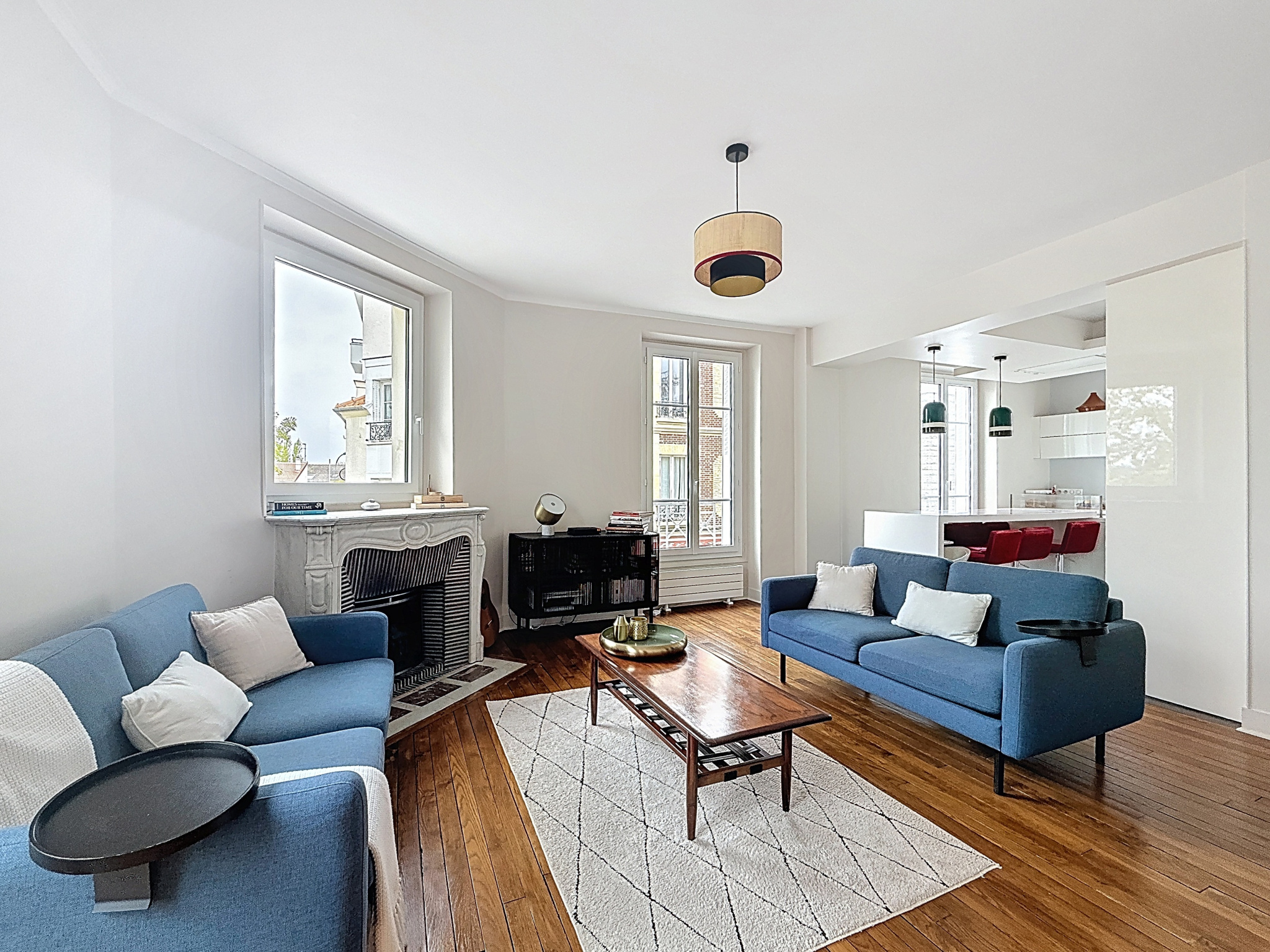 Vous découvrirez un beau séjour traversant, baigné de lumière, agrémenté d'une cheminée qui crée une atmosphère chaleureuse et conviviale. Il s'ouvre sur une cuisine dinatoire, aménagée et entièrement équipée.