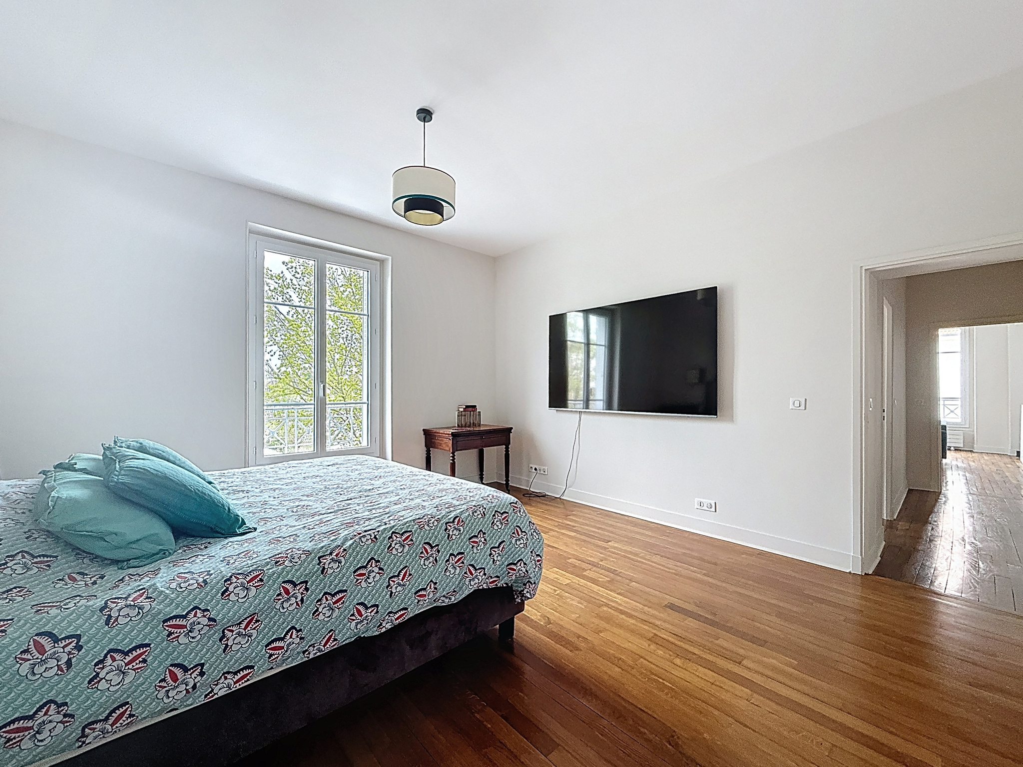 L'espace nuit se compose de deux chambres spacieuses avec rangements intégrés (21 m2 et 13 m2), ainsi que d'une salle d'eau contemporaine avec WC.