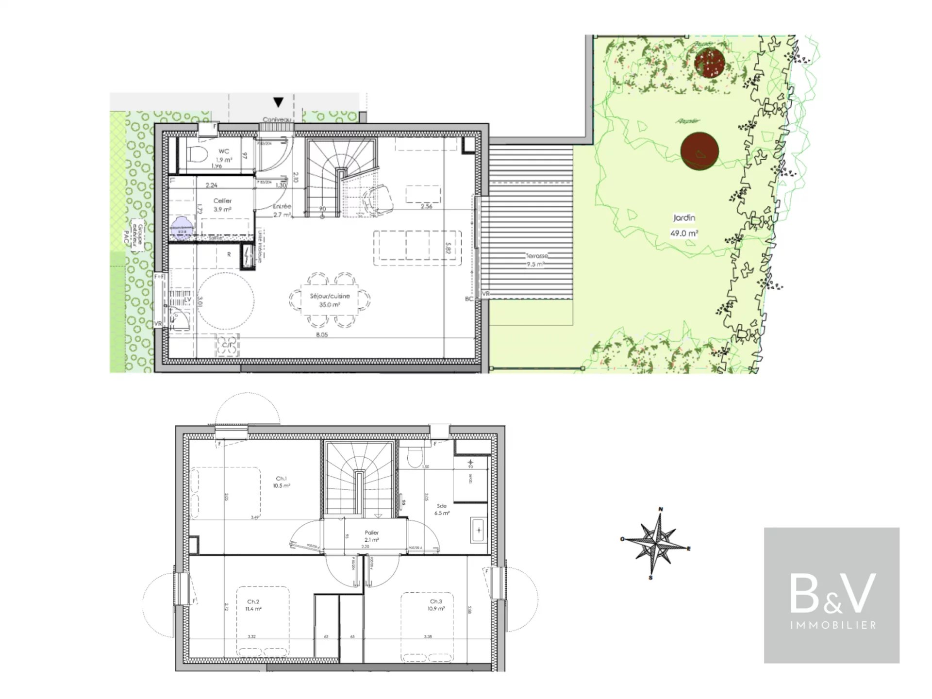 Dès l'entrée, vous serez séduit par une spacieuse pièce de vie de 35 m² avec cuisine ouverte, un cellier et un WC indépendant.