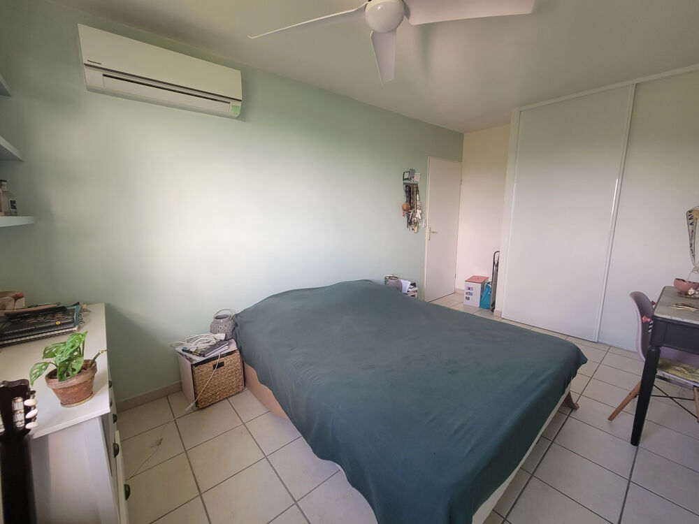L'espace nuit propose deux chambres climatisées avec placards. La salle d'eau est complétée par un espace buanderie à l'arrière, particulièrement pratique au quotidien, ainsi qu'un WC indépendant.