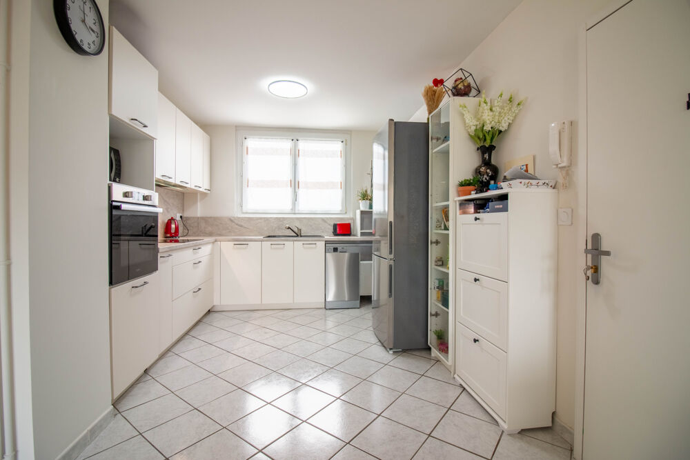 Une entrée menant directement à une belle pièce de vie d'environ 28 m2, avec accès au balcon exposé sud, ouverte sur une cuisine entièrement aménagée et équipée, complétée par un cellier faisant office de buanderie.