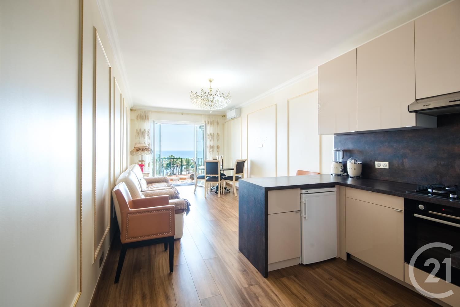 Nice Promenade des Anglais Ouest, vue mer, situé sur l'avenue de la Californie au 5ème étage, cet appartement 3 pièces de 74m² avec terrasse est baigné de soleil, traversant, très bon état, converti en 4 pièces il peut facilement revenir à l'état initial, cuisine US équipée, résidence sécurisée, une cave complète le bien. Quartier avec toutes les commodités, tramway, restaurants, commerces à deux pas de la plage et de l'aéroport international de Nice. Prix : 445000.0 euros, Honoraires charge vendeur. Copropriété :Nb de lots : 90