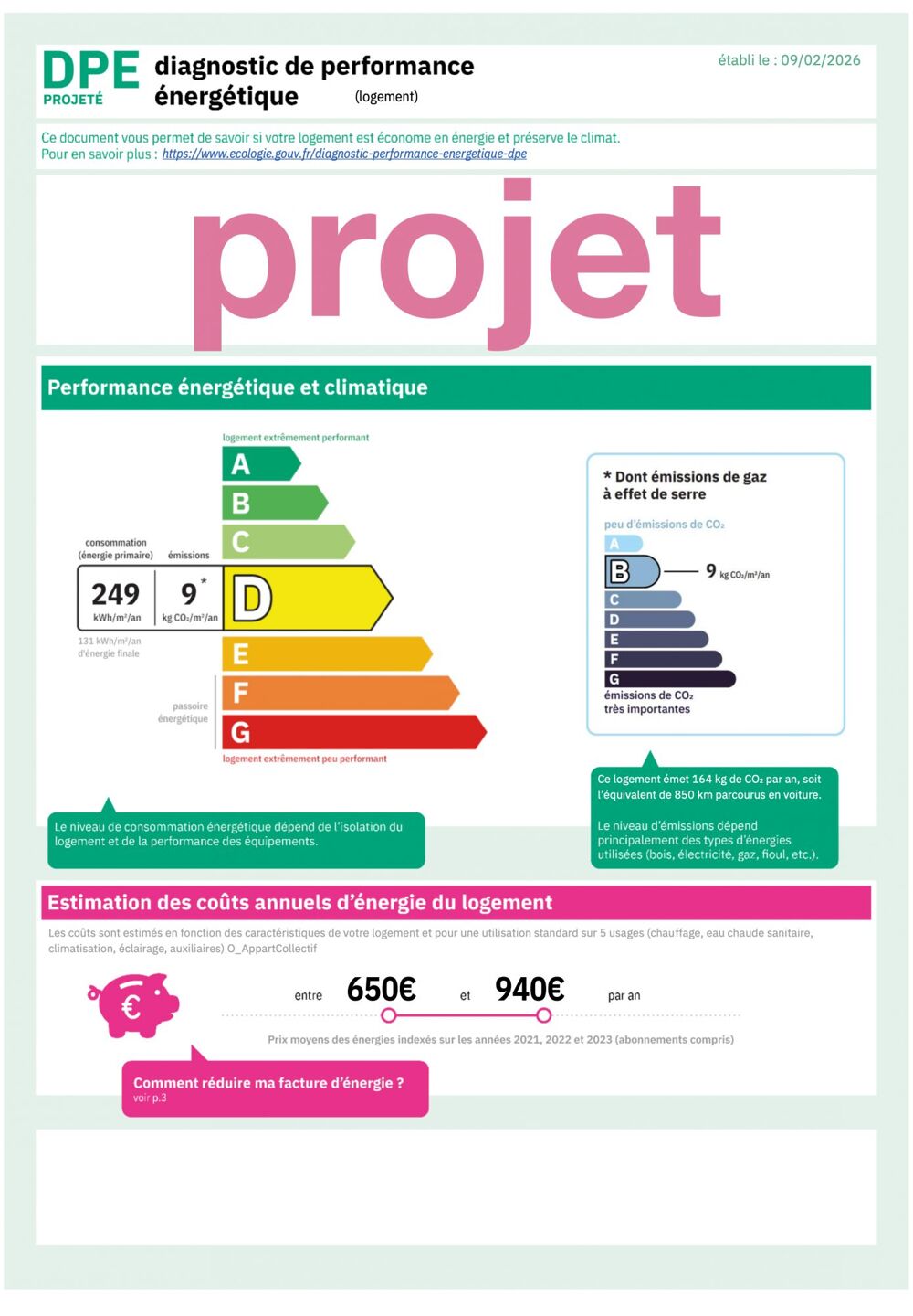 DPE projeté D après installation climatisation réversible chaud/froid.