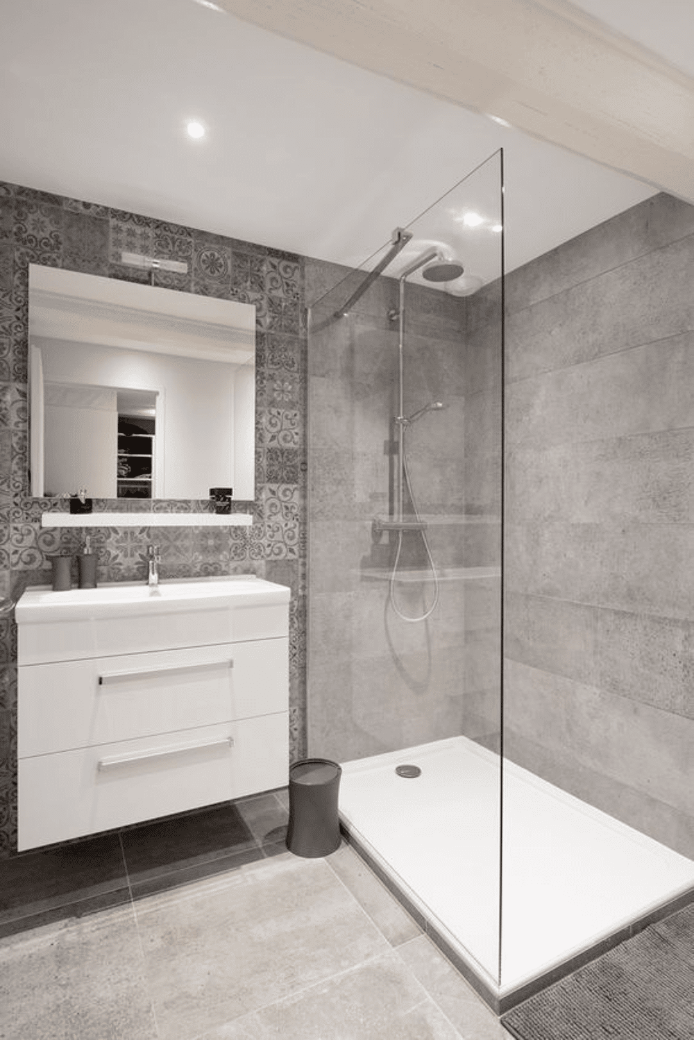 - Faïence toute hauteur dans la salle de bains