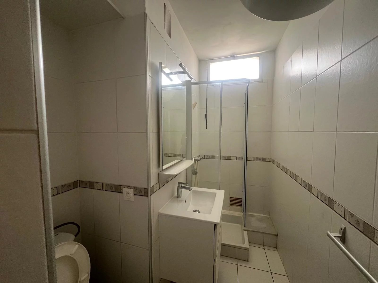 La salle d'eau avec wc est équipée d'un meuble vasque et d'une robinetterie récemment installés.