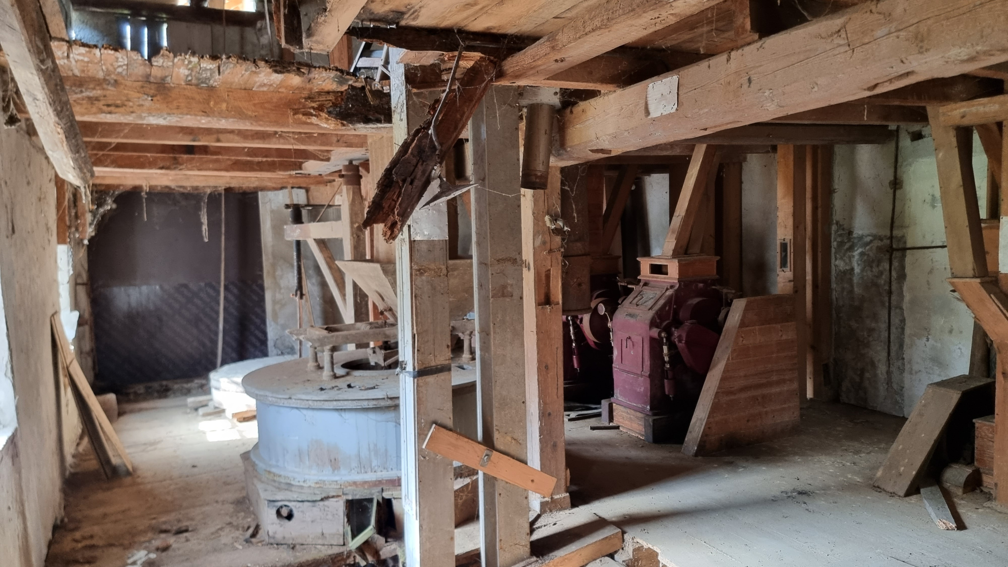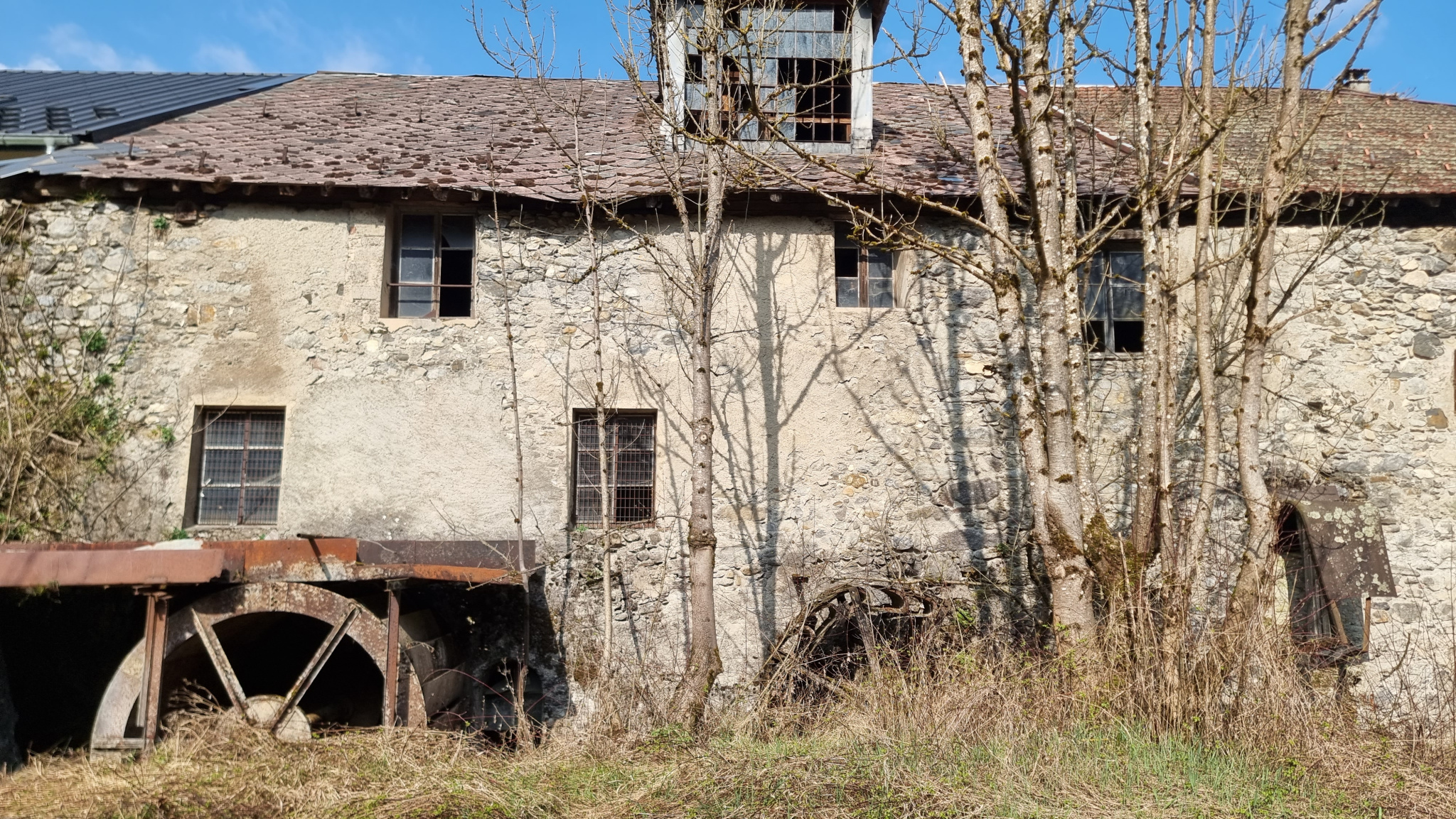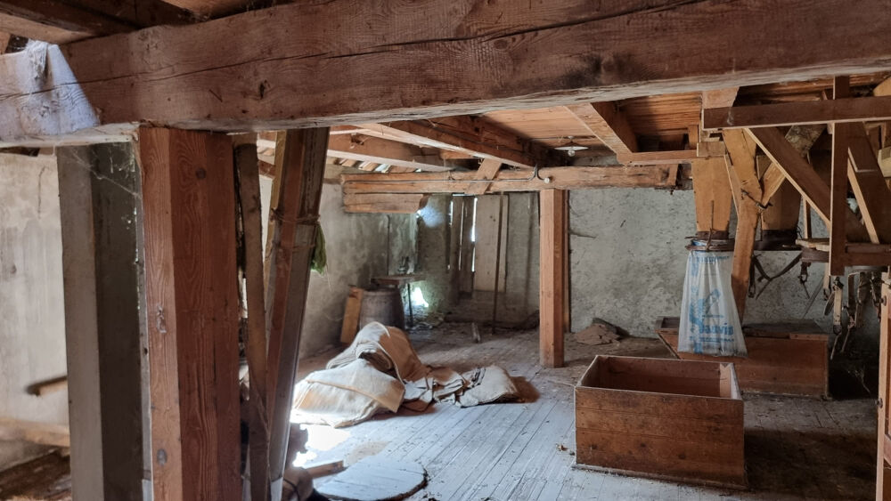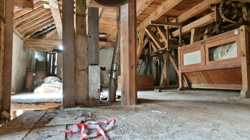 Authentique moulin en l'état, mitoyen des deux côtés, offrant de grands volumes bruts à aménager selon vos projets.