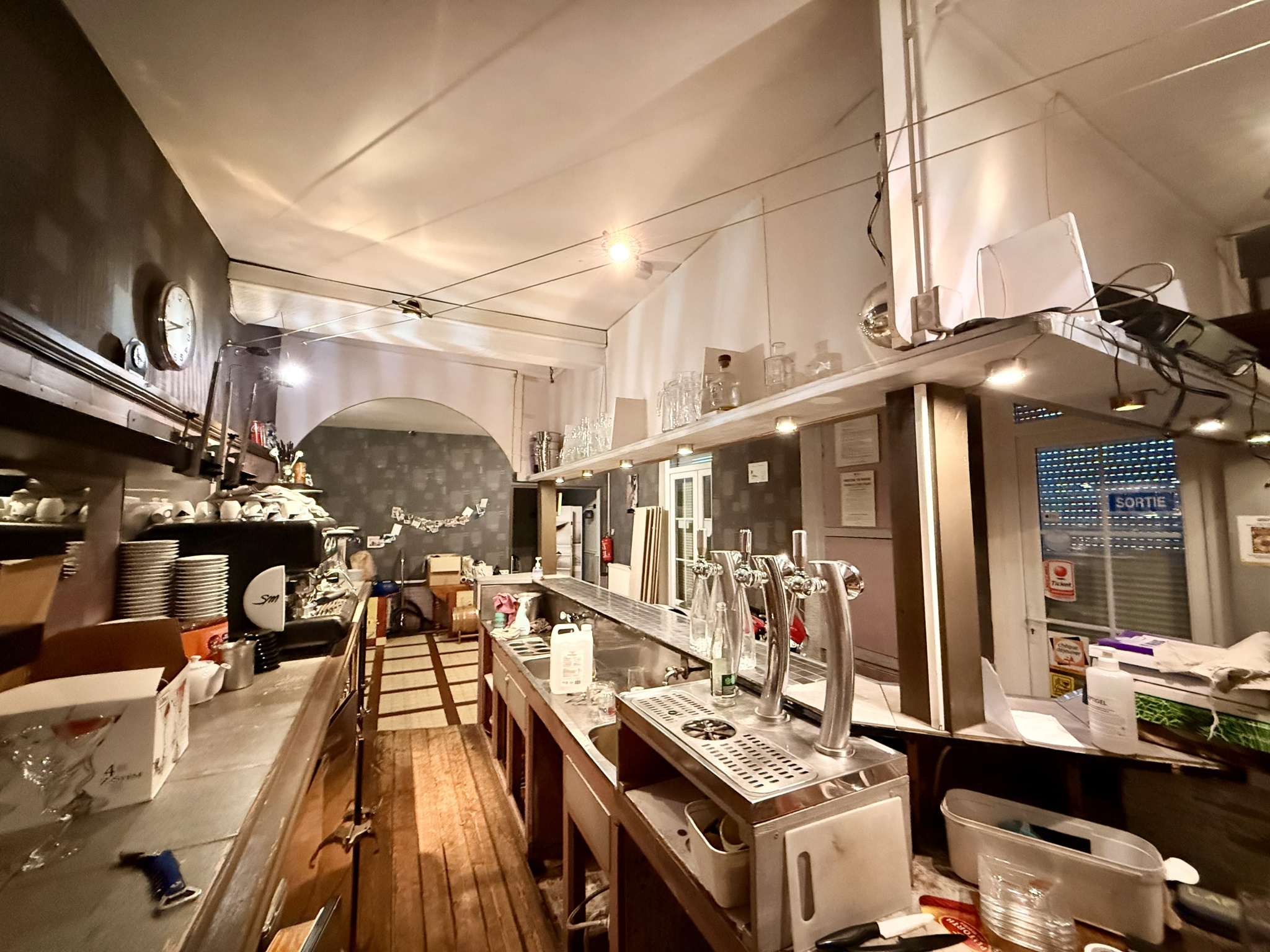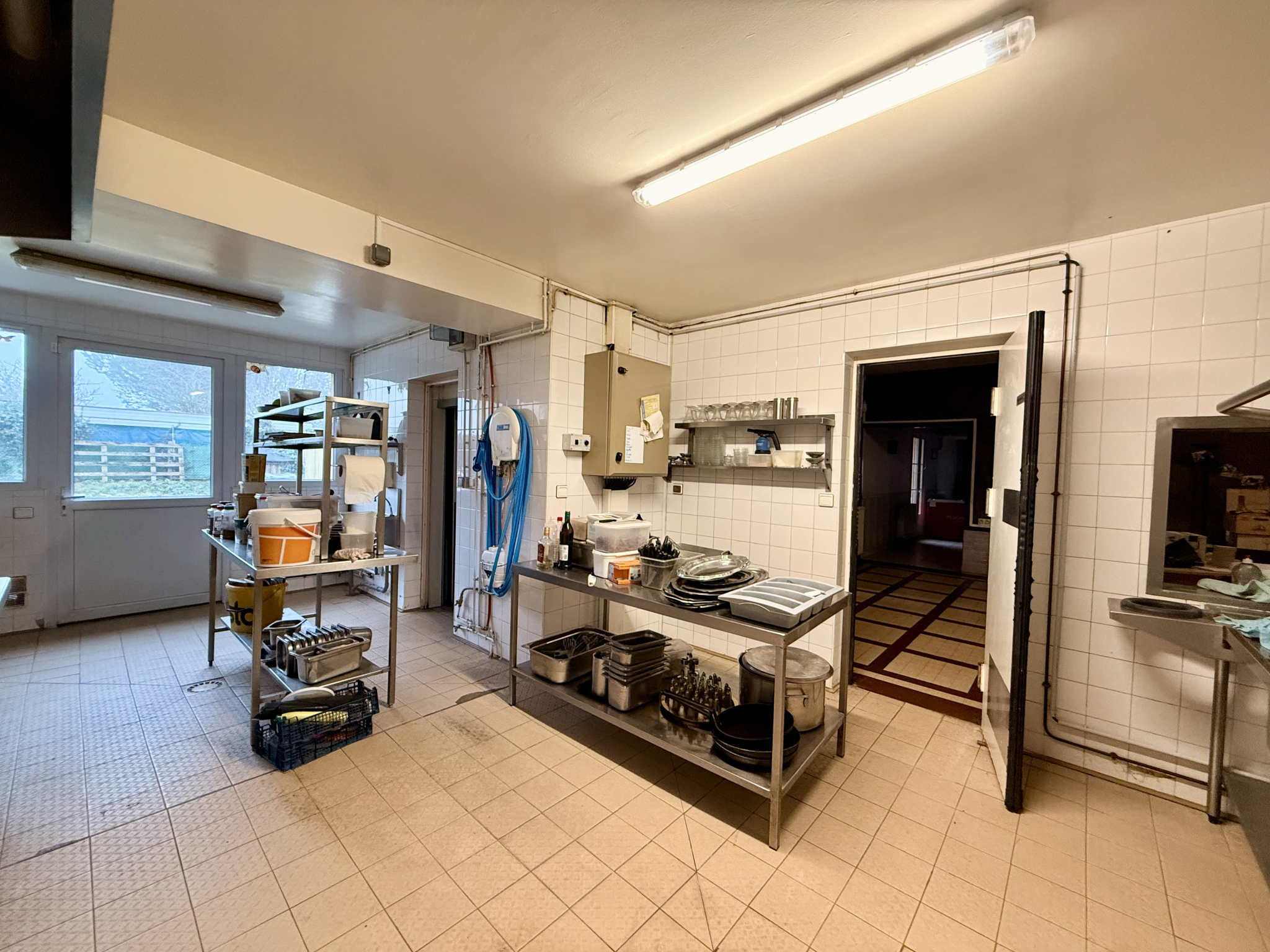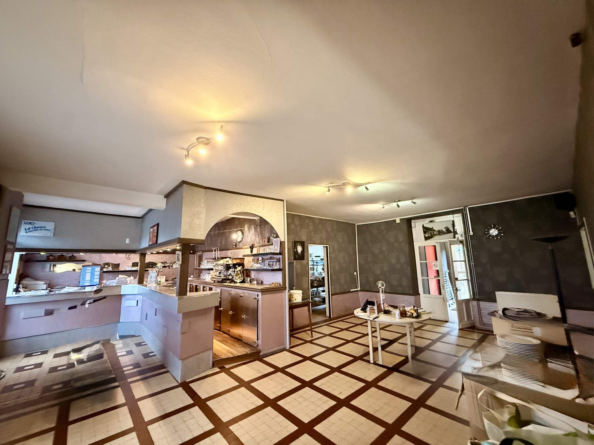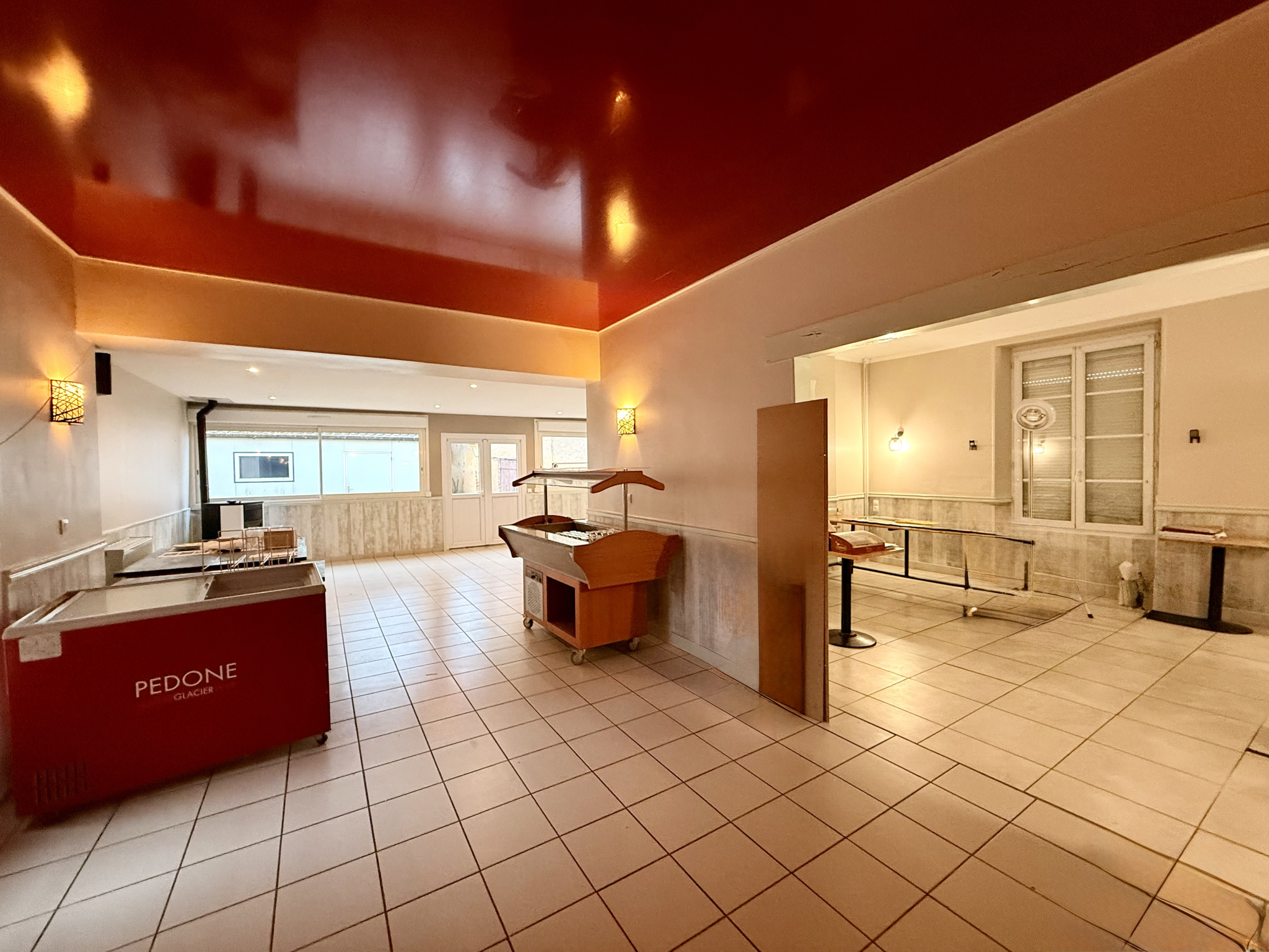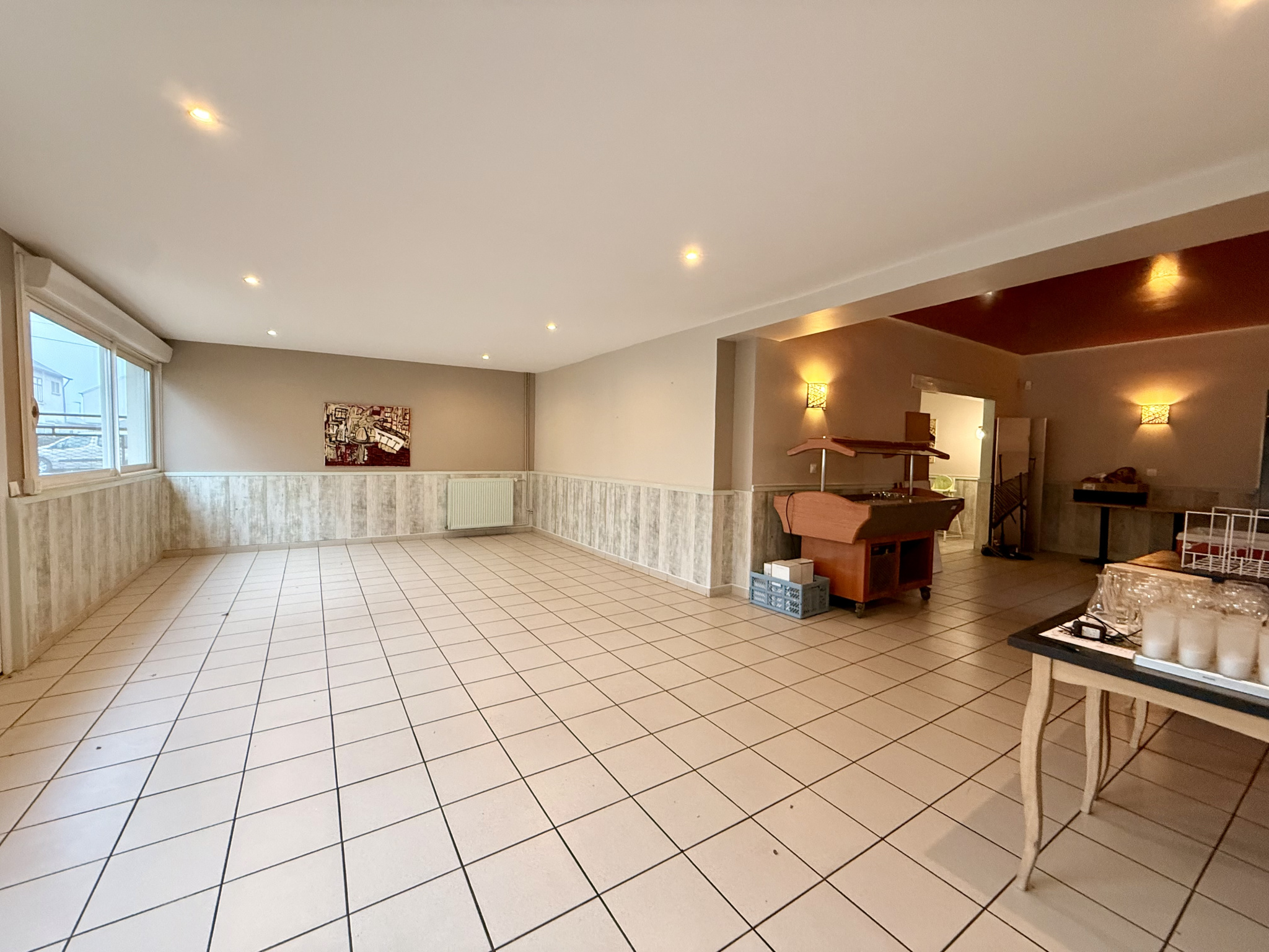 Le rez-de-chaussée se compose : d'une entrée donnant sur une salle de restauration avec bar, d'une salle de réception avec pièce attenante, offrant une capacité d'environ 90 couverts et 70 places assises (surface d'environ -), modulable selon vos besoins, d'une cuisine professionnelle déjà équipée, idéale pour laisser libre cours à votre créativité culinaire, d'une arrière-cuisine, d'une cave et d'une réserve. Tout est réuni pour démarrer votre activité dans d'excellentes conditions.