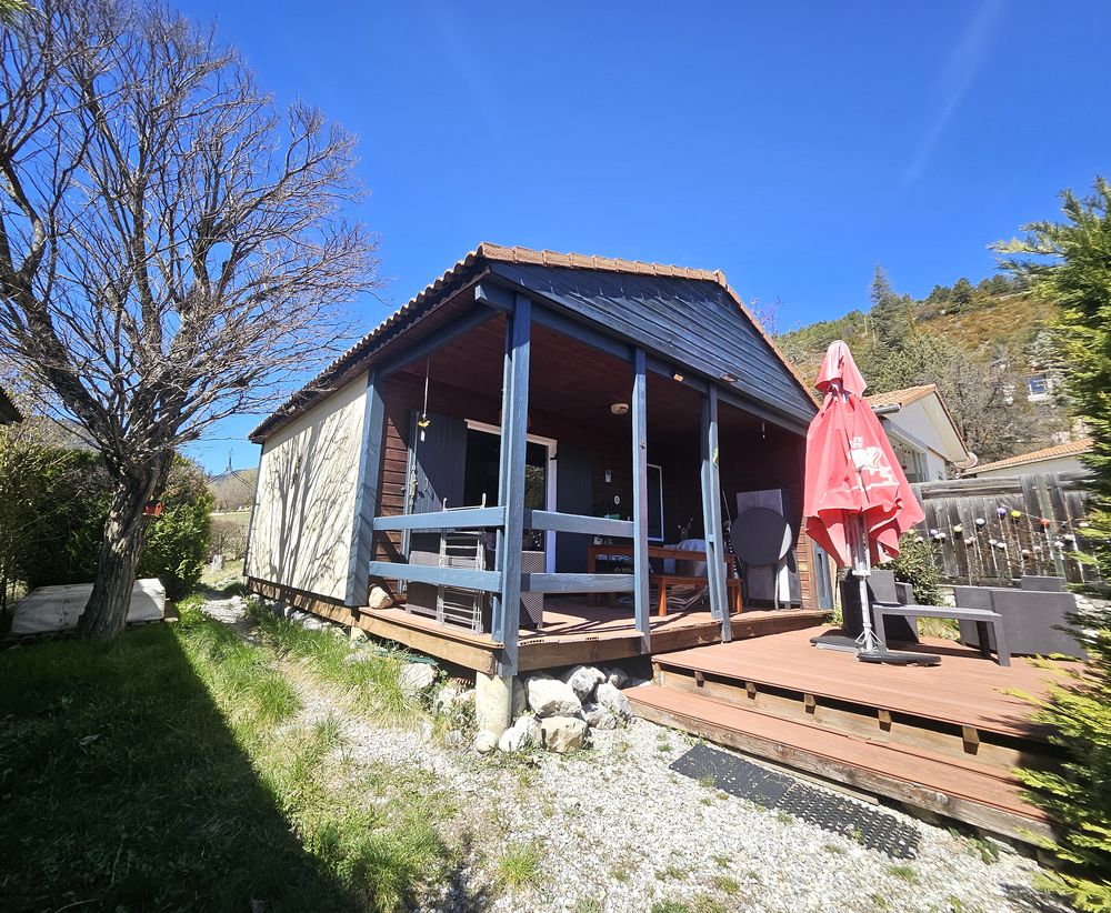 CASTELLANE - Exclusivité - Découvrez cette habitation légère de loisirs de type chalet, idéalement située au sein d'un parc résidentiel à proximité immédiate du Lac de Castillon. Orientée Est, cette habitation offre une surface fonctionnelle et optimisée comprenant : une pièce de vie avec salle à manger et cuisine de 14 m², une chambre avec lit double (7,10 m²) avec placard, une seconde chambre avec 3 couchages (4,40 m²) également équipée de rangements, une salle d'eau (2,7 m²), un WC séparé (0,9 m²), ainsi qu'un espace de rangement avec ballon d'eau.Implantée sur un terrain clôturé d'environ 300 m², agrémenté d'une haie végétale, cette propriété est vendue entièrement meublée. Elle bénéficie également d'une terrasse couverte de 12 m², d'une terrasse extérieure de 9 m² et d'un emplacement de stationnement.