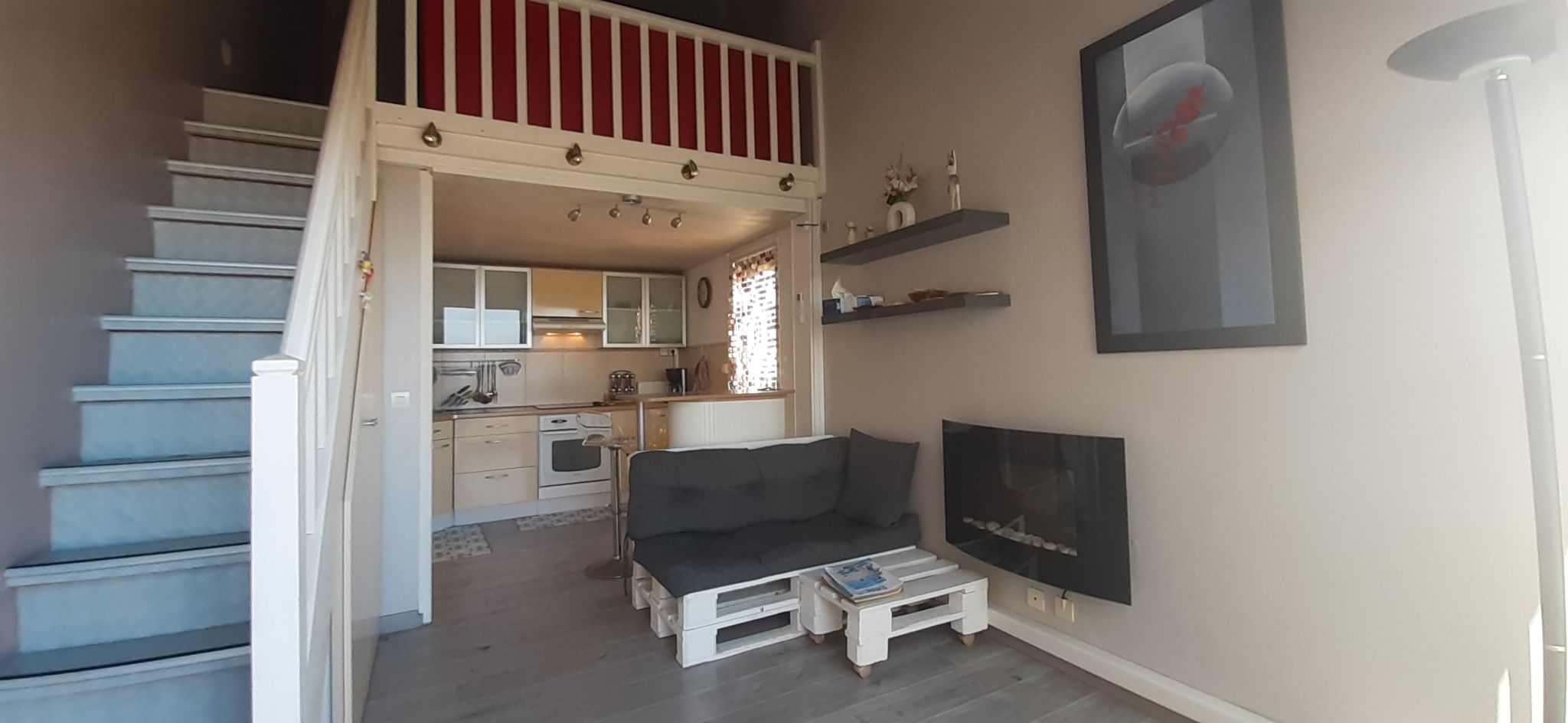 Deux chambres dont une avec terrasse à l'arrière et la seconde mansardée avec velux permettent un séjour confortable pour ses occupants. Un epace salon est également présent pour des moments conviviaux à l'étage.
