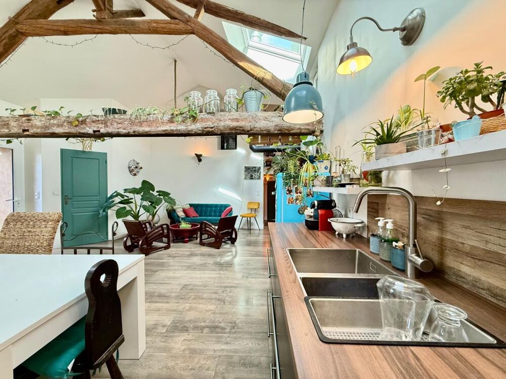 Derrière sa façade discrète se cache un lieu de vie totalement inattendu, développant 184,63 m² habitables répartis sur plusieurs niveaux, dans un esprit loft mêlant authenticité et rénovation contemporaine.