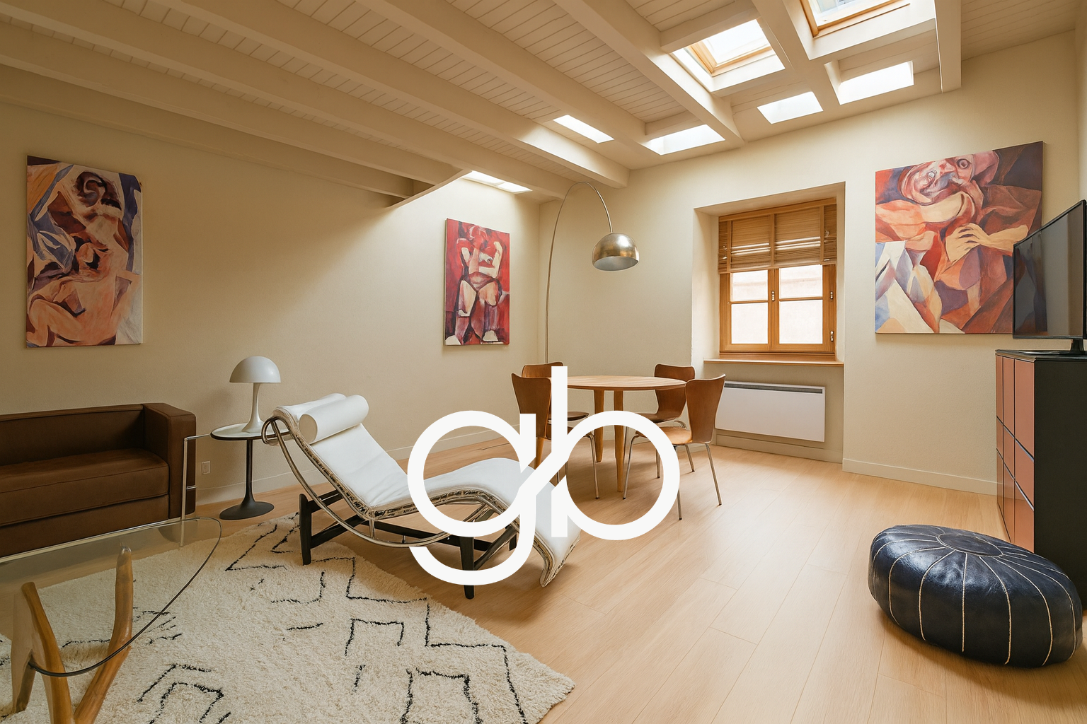 Espace de Vie (26 m2) : Un vaste séjour baigné de lumière avec un parquet authentique, créant une atmosphère chaleureuse.