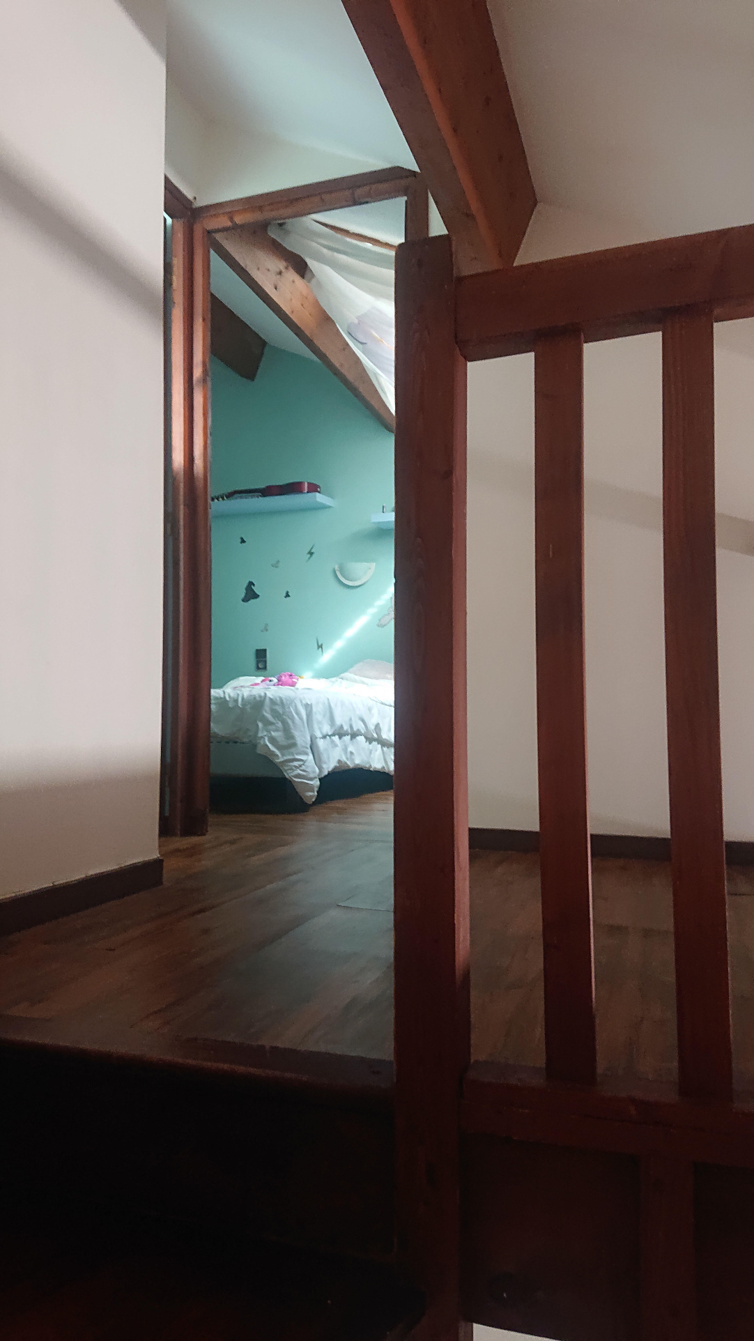 A l'étage, une Mezzanine permet l'accès à la partie nuit avec deux chambres, la première de 8.50 m2 (10.55 m2 au sol) et la seconde de 6.35 m2 pouvant aussi faire office de bureau.