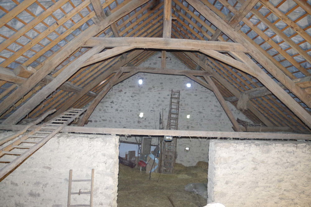 sans voisins proches pour cette ancienne fermette de plain pied de 85m2 env. habitables, 6 pièces, salle de bains, wc, simple vitrage, cc fuel + cuisinière à bois, grange et écurie attenante de 90m2 au sol, grenier aménageable au dessus, dépendances indépendantes, cave voûtée, l'ensemble sur cour, jardin et pré attenant pour une surface totale de 1ha 45a 65ca avec puits et superbe vue!!