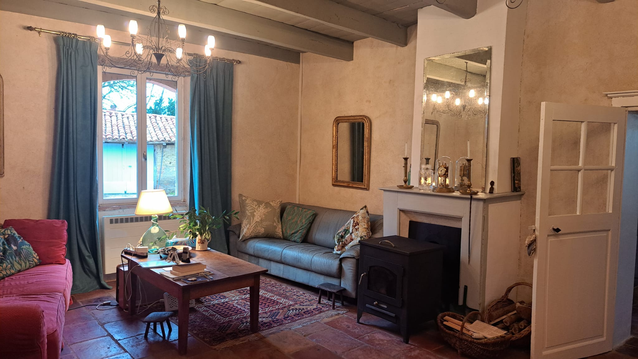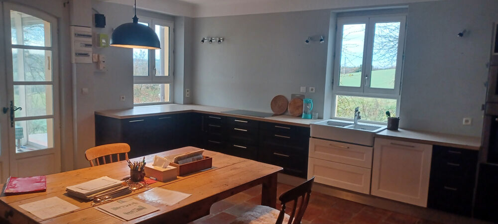 - CUISINE EQUIPEE/SALLE A MANGER AVEC cheminée Anse de panier de 33m2
