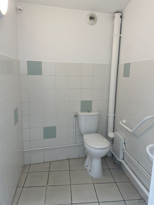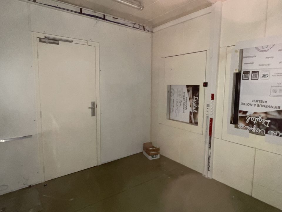 Rez-de-chaussée : hall d'accueil, 3 bureaux, pièce de stockage, pièce sanitaire avec 2 toilettes, 2 pièces noires.