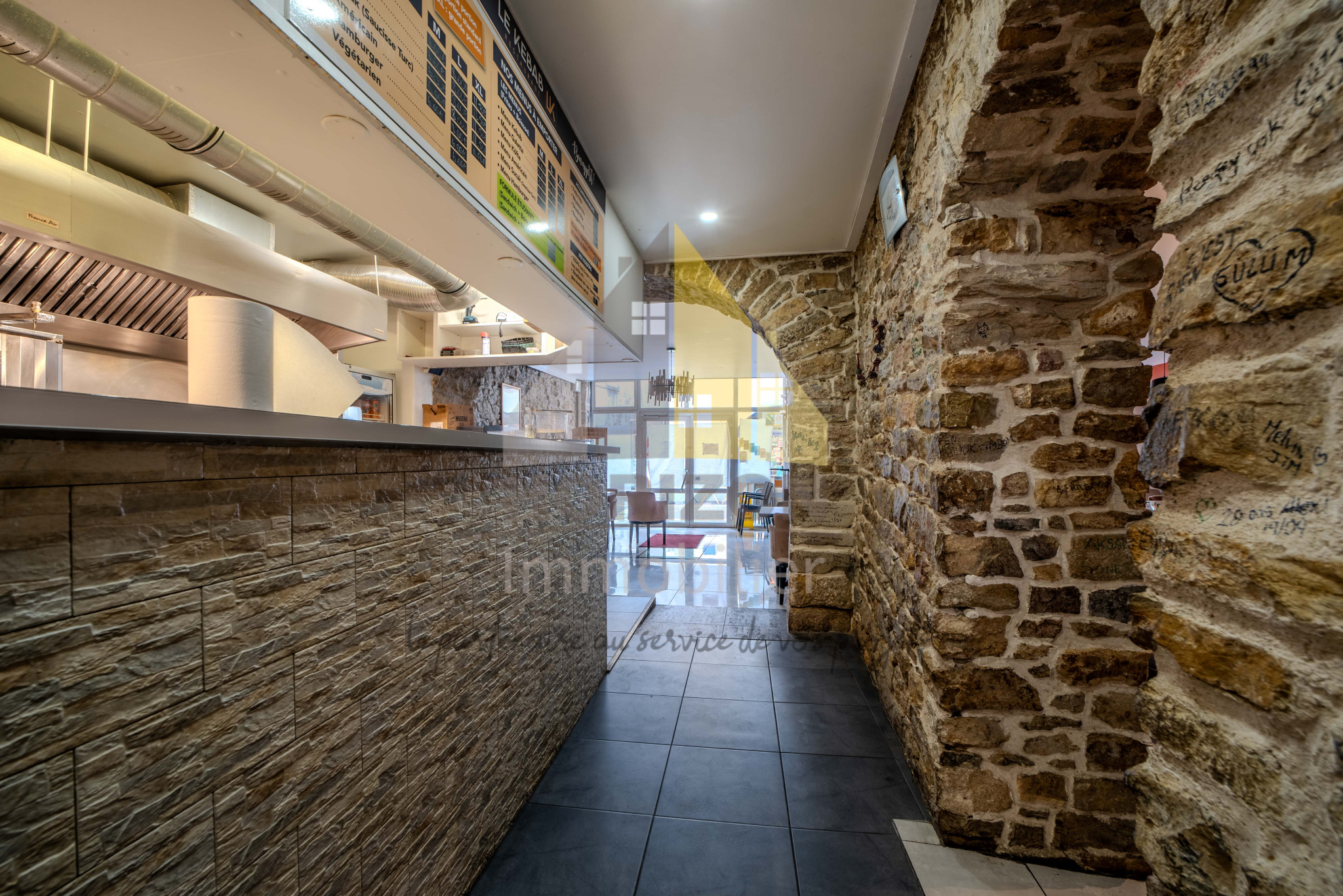 Il comprend deux entrées : une entrée principale pour le local commercial donnant directement sur la rue passante, ainsi qu'une entrée indépendante accessible par le côté de l'immeuble.