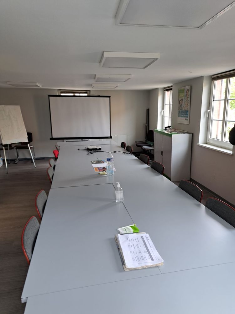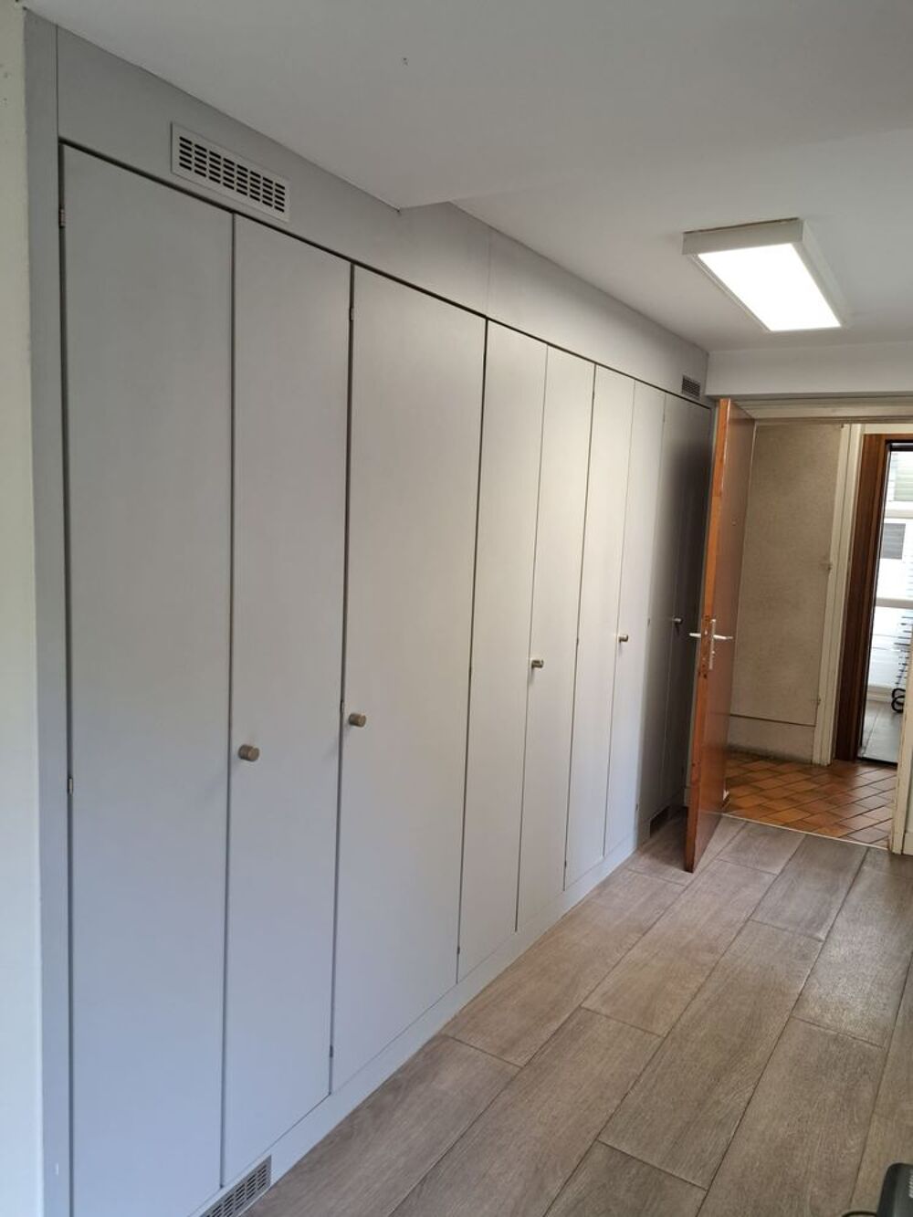 A l'étage, 1 entrée ,1 grande salle de réunion et 1 bureau privatif, 1 WC, surface globale de 47,80m².