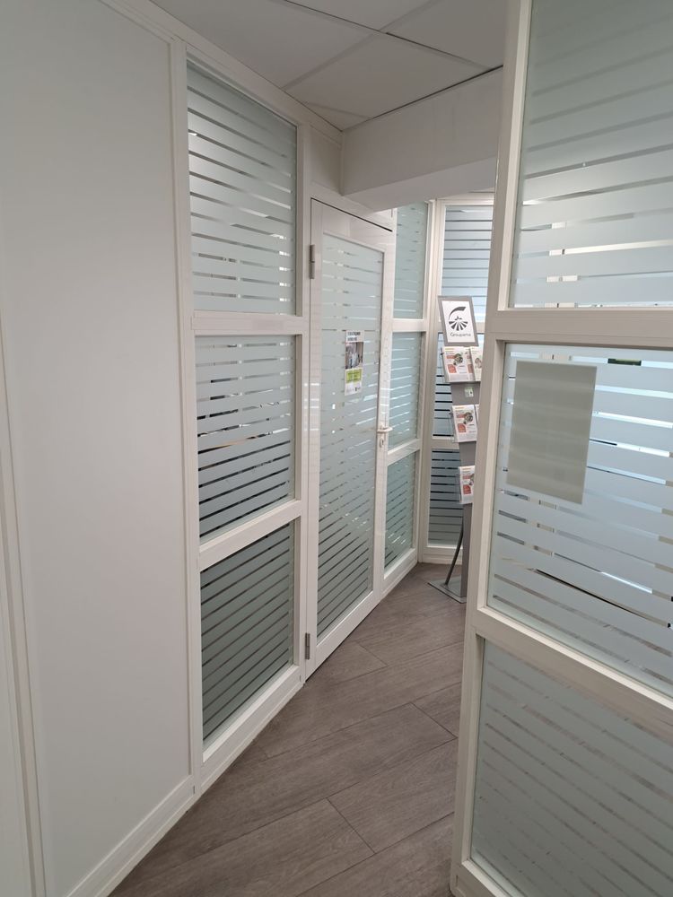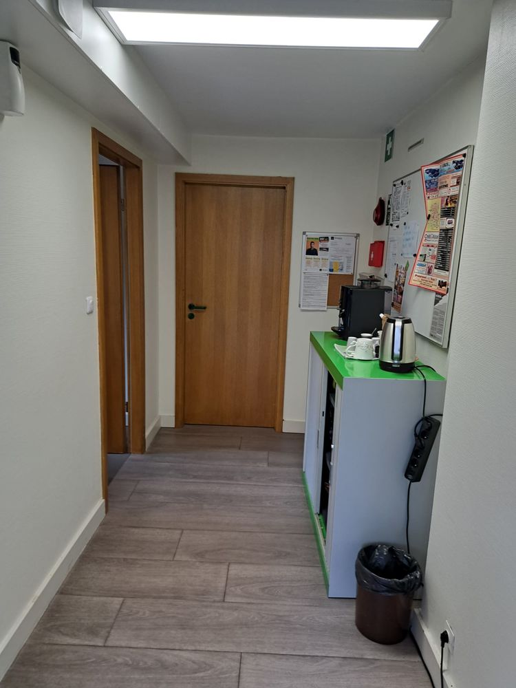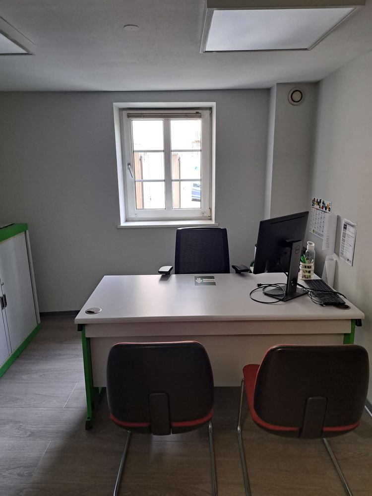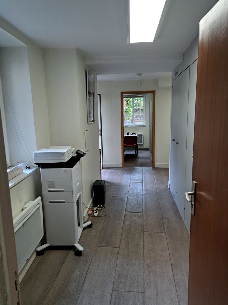 Au Rez-de-chaussée : 1 entrée avec 2 bureaux équipés de rangements, un coin cuisine et sanitaires privatifs, 3 bureaux cloisonnés fonctionnels et lumineux, d'une surface globale de 107,61m².
