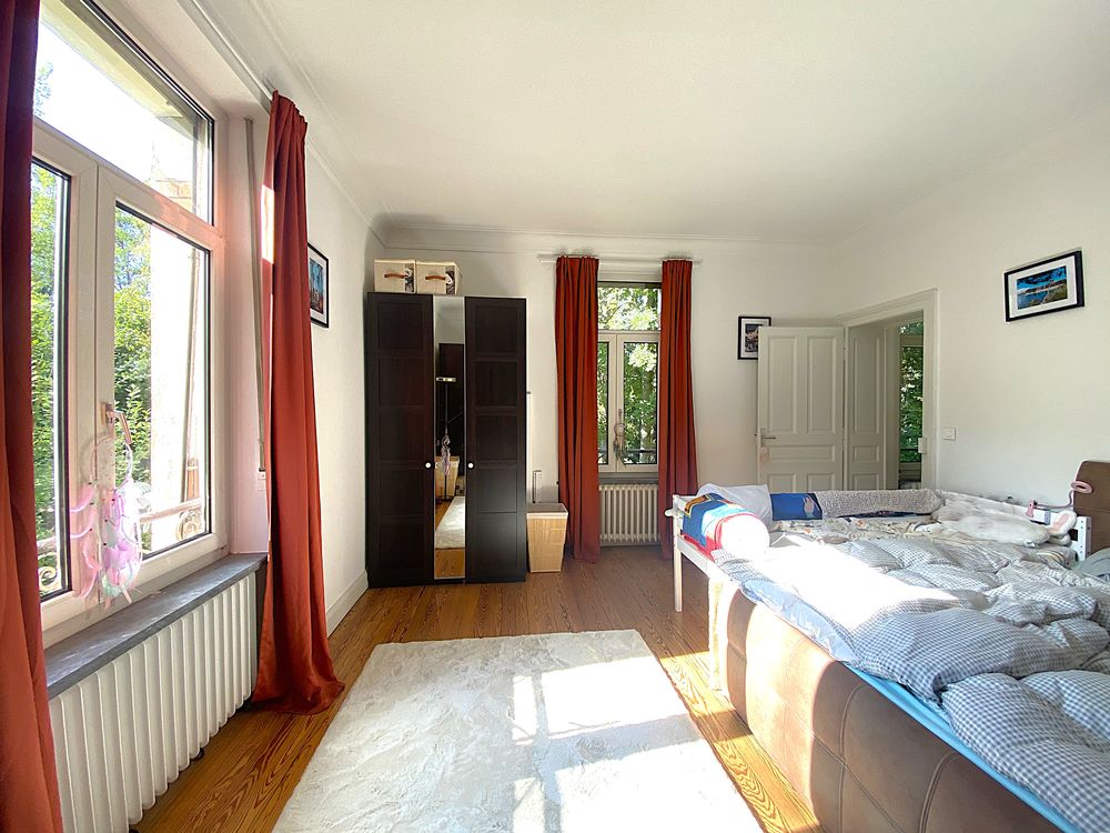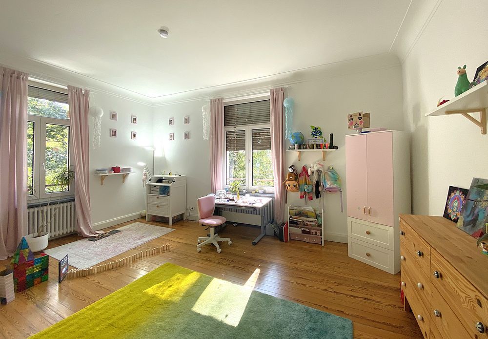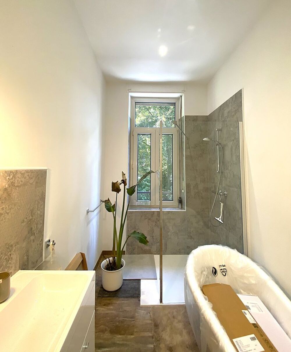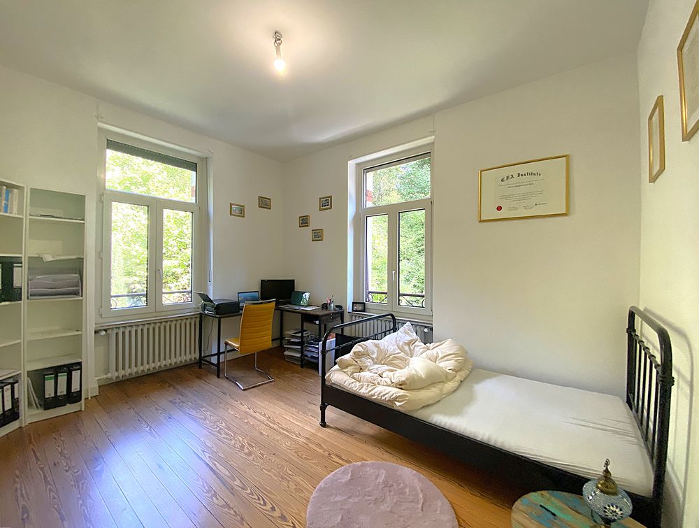 Cette villa Art Nouveau récemment rénovée, datant de 1926, avec une surface de terrain de 3 976 m² et une surface habitable de 343 m², séduit par son emplacement unique et calme à Petite-Rosselle (FR).Depuis l'entrée, vous accédez au séjour lumineux et spacieux, doté d'un poêle en faïence et de moulures au plafond. La salle à manger claire offre un accès direct à la véranda. La cuisine, équipée de carreaux Art Nouveau d'époque et d'une nouvelle cuisine aménagée, bénéficie d'une grande réserve attenante. À ce niveau, ainsi qu'au demi-étage menant au premier étage, se trouvent chacun un WC pour invités avec lavabo.