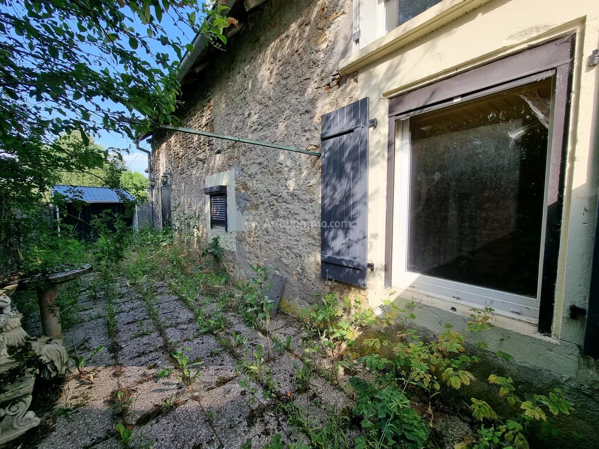 Un garage non attenant (à quelques mètres de la maison) avec jardin/potager.