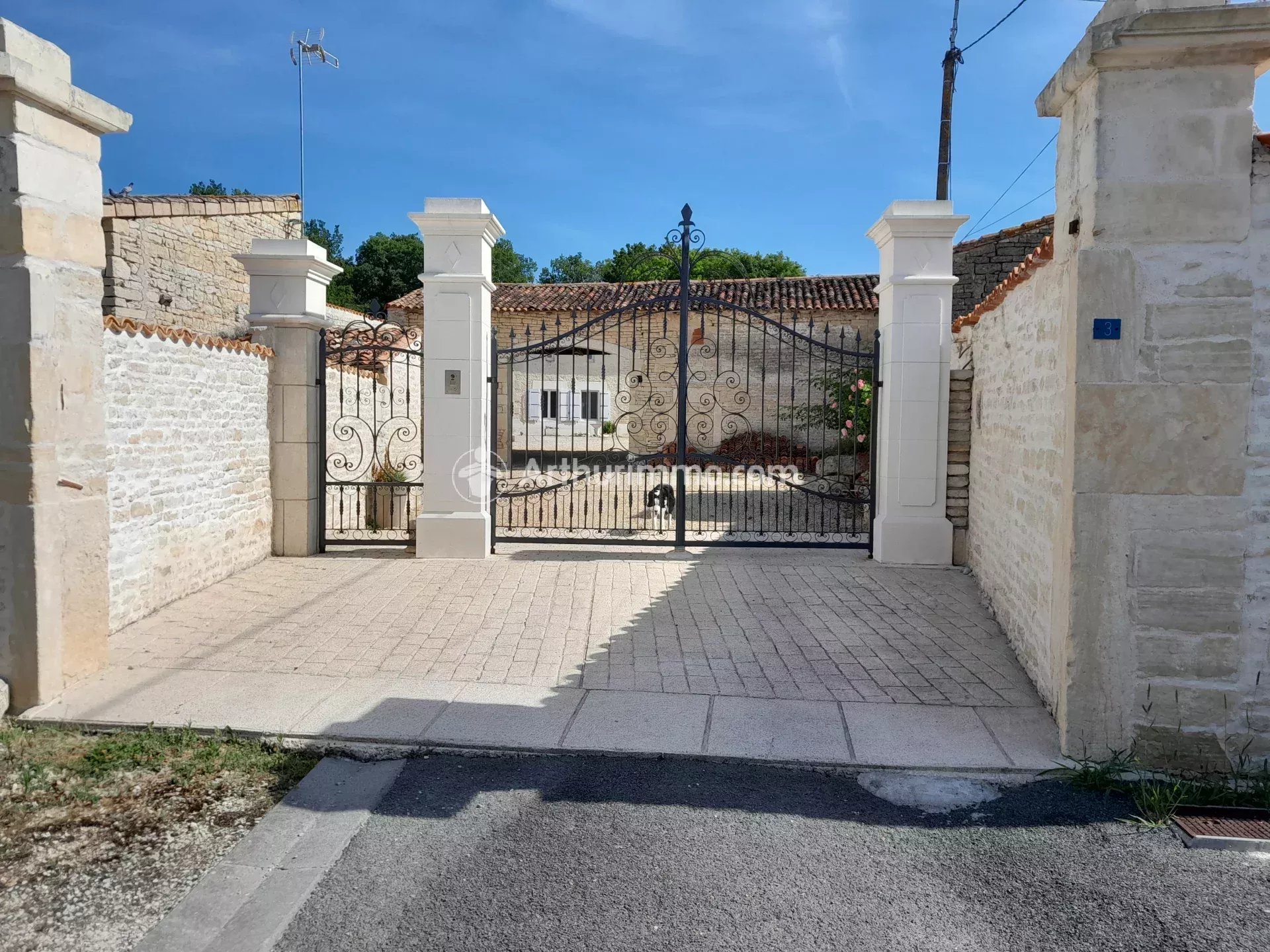 Ensemble immobilier clos de mur entièrement sur l'avant donnant sur plus d'un hectare de terrain boisé sur l'arrière.