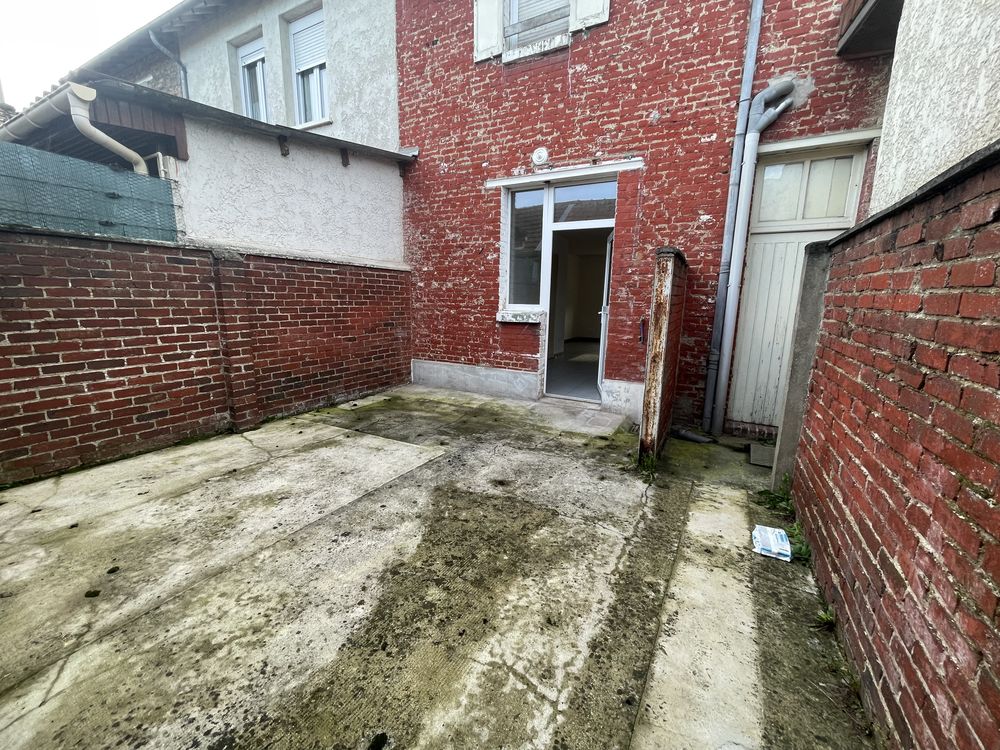 Une maison comprenant une pièce de vie , une cuisine , un bureau , 2 chambres et une courette avec dépendances.