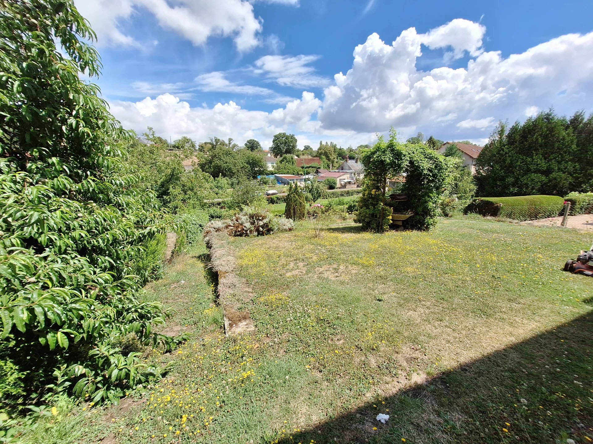 En extérieur: jardin clos , un garage et appentis.