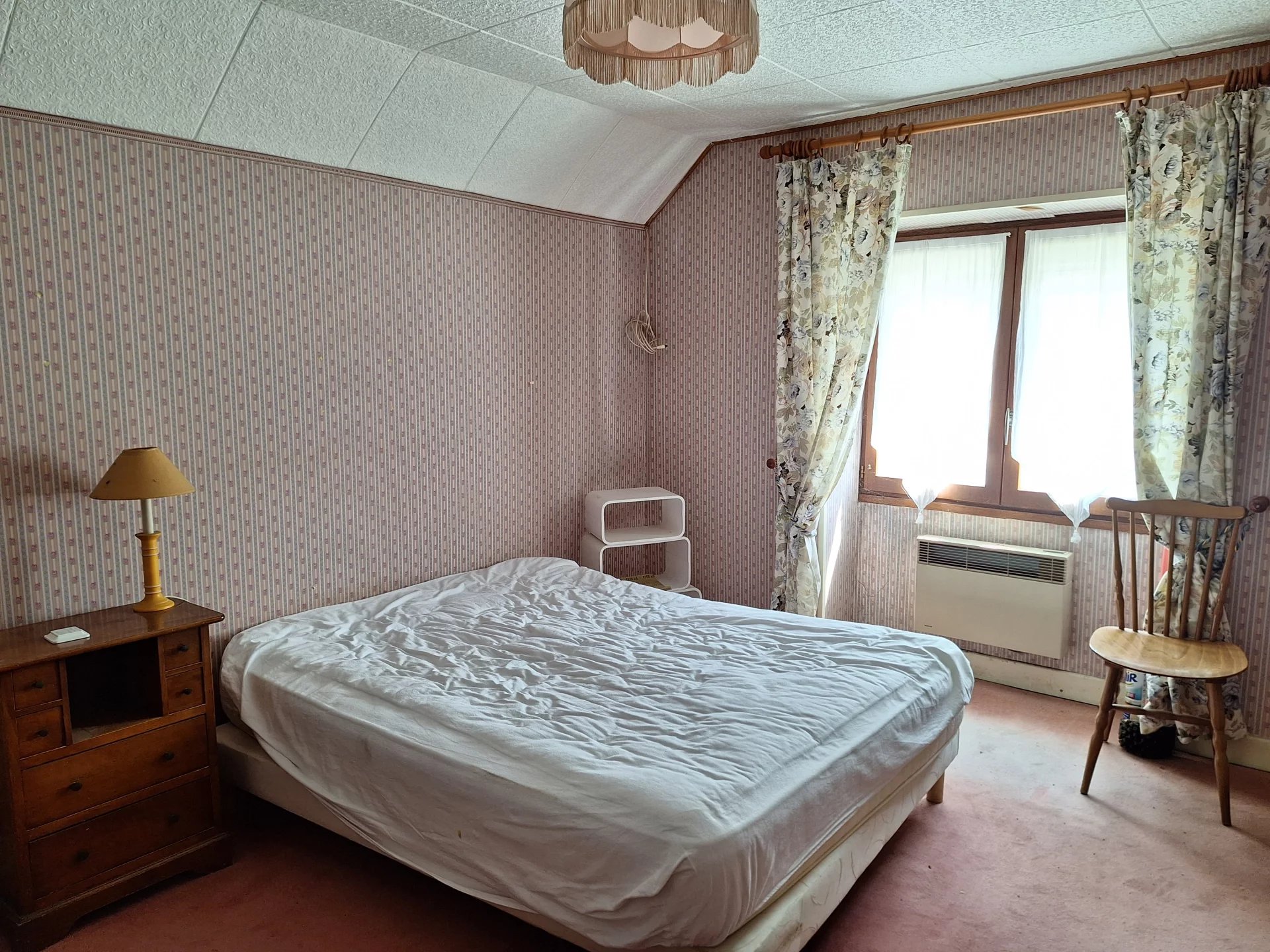 Maison indépendante plain pied, composée d'une entrée, cuisine, salon/salle à manger avec poêle à granulé, couloir, toilettes, une chambre, salle de bains et douche.A l'étage: grande chambre, une partie grenier pouvant être aménagé.
