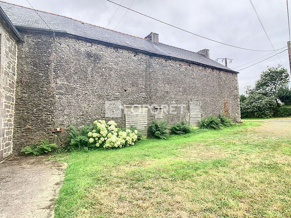MENEAC 56490- Ensemble de bâtiments composés d'une longère de 150m² au sol, avec grenier, construite en pierre sous ardoise, raccordée en eau et en électricité. En face, une maison mitoyenne d'un côté de 50m² au sol construite en pierre sous ardoise, avec puits et appentis. Pour compléter cet ensemble 64020m² de terres agricoles actuellement sous fermage.