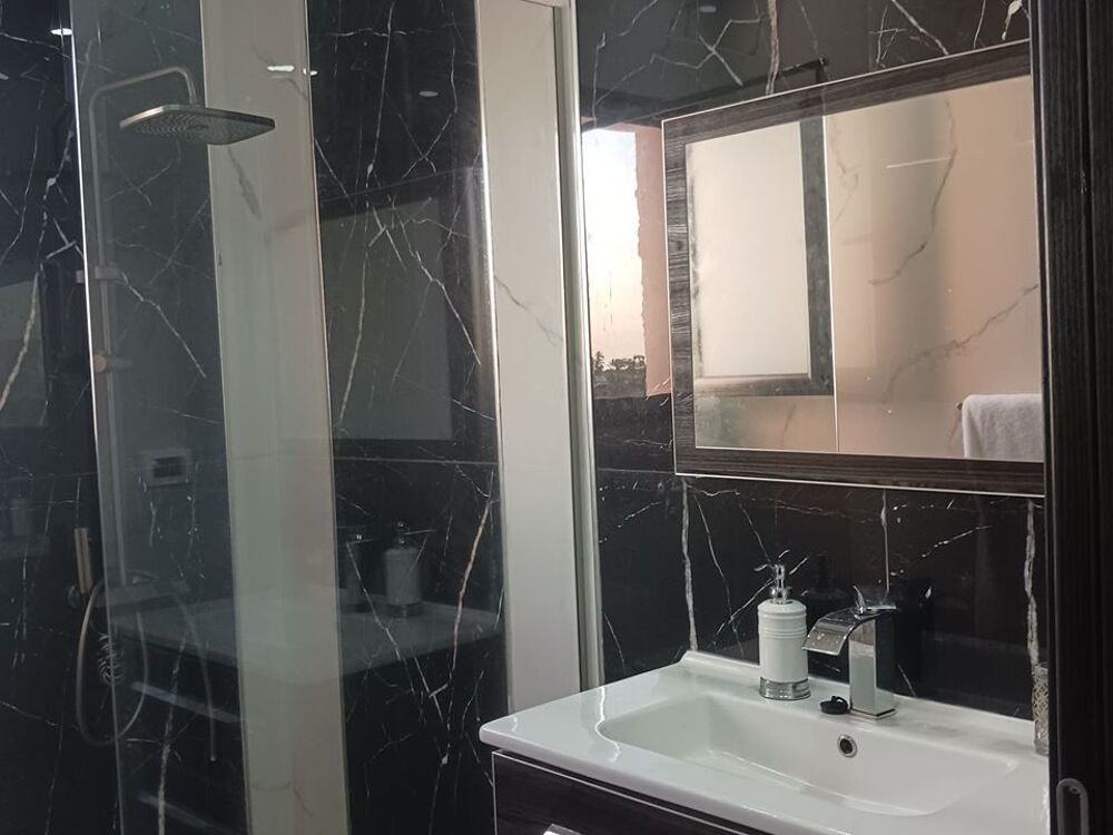 Rc : un salon grandes baies vitrées, cuisine ouverte aménagée, 1 suite