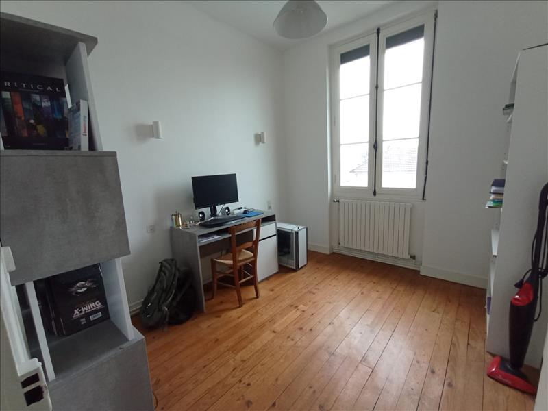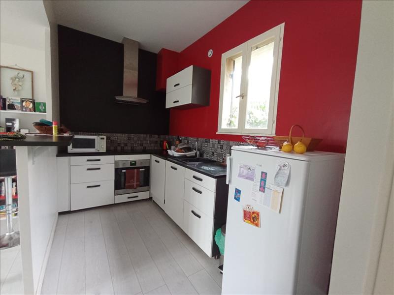 Proche des commerces, des écoles et de la gare à pied, maison en pierre comprenant une pièce de vie avec une cuisine équipée, trois chambres, et une salle d'eau.