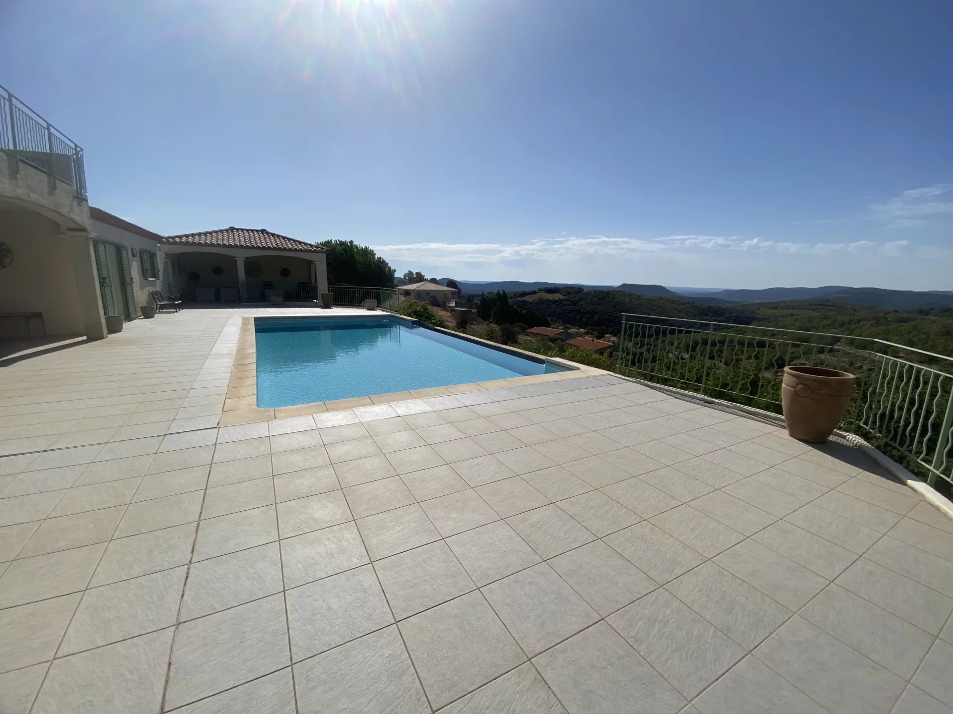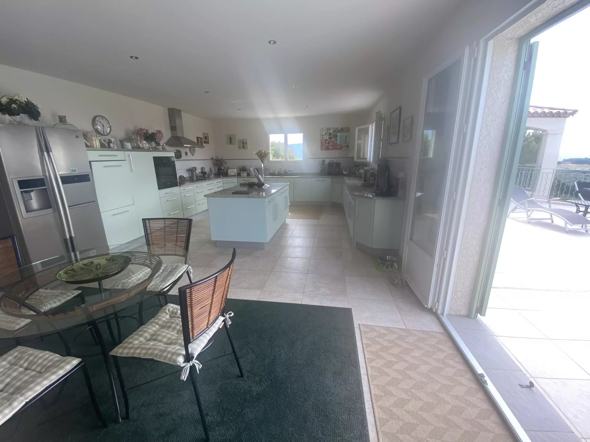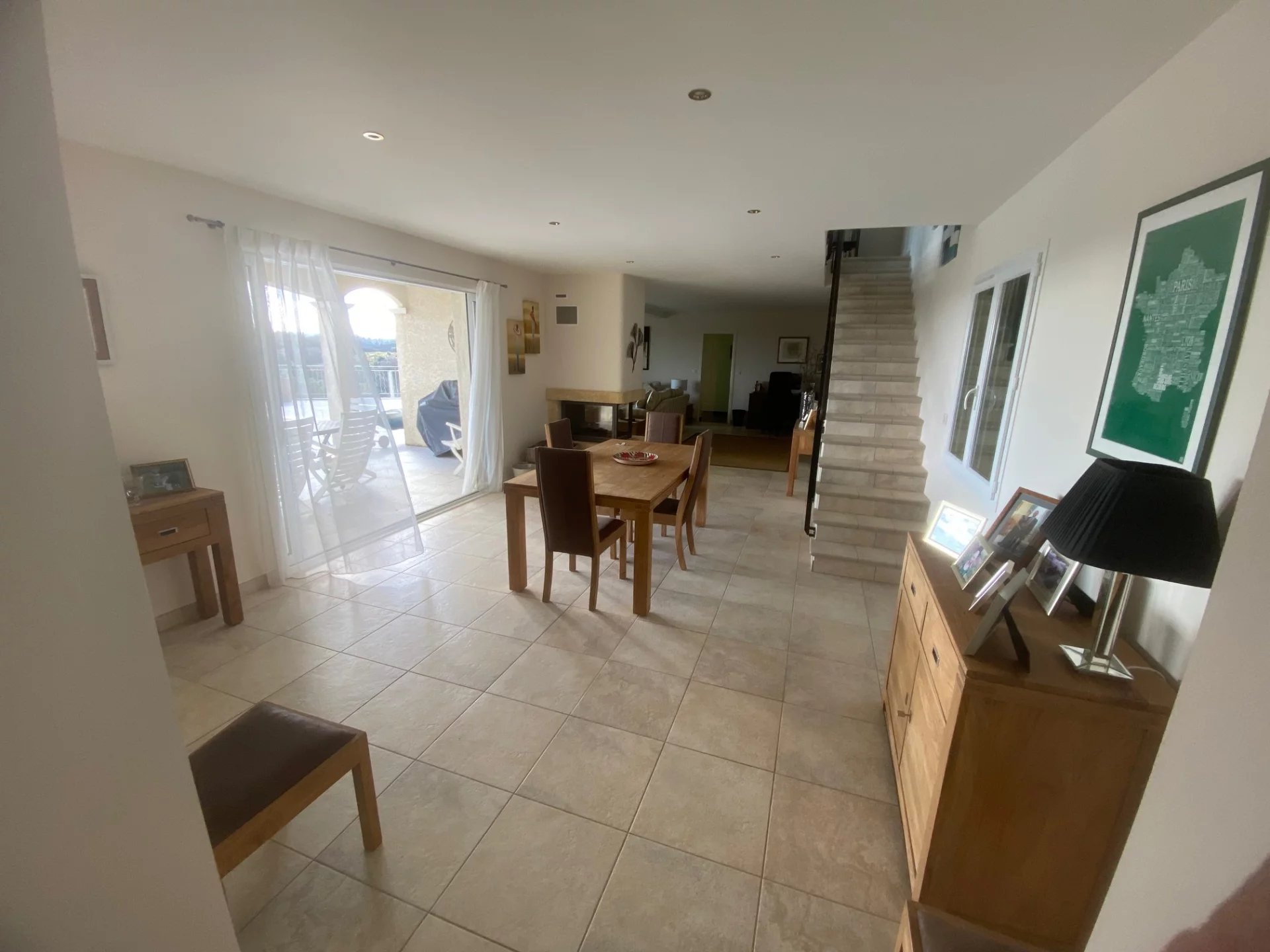 Rez de chausse pieces à vivre : vaste cuisine de 35 m2 et un sejour ouvrant ouvrant sur la terrasse ( plus de 200m2) et l'espace piscine à débordement ( au sel) .