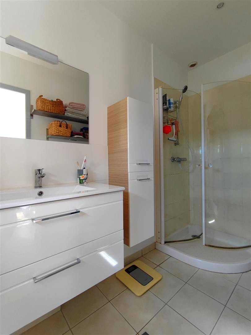Sur une surface habitable de 108m², elle offre de plain-pied une entrée avec placard, une belle pièce de vie lumineuse avec accès sur une terrasse offrant une vue imprenable sur la piscine Une cuisine équipée, aménagée et fermée avec espace repas vient compléter ce niveau.