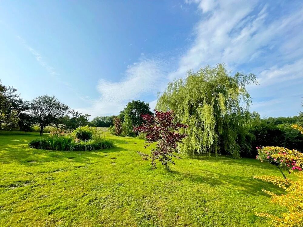 Dans un cadre bucolique, au calme et sans vis-à-vis, vous pourrez profiter d'un magnifique terrain paysager (idéal pour les amoureux des plantes), de nombreux arbres d'ornements, d'une petite mare ainsi que de faire votre potager.