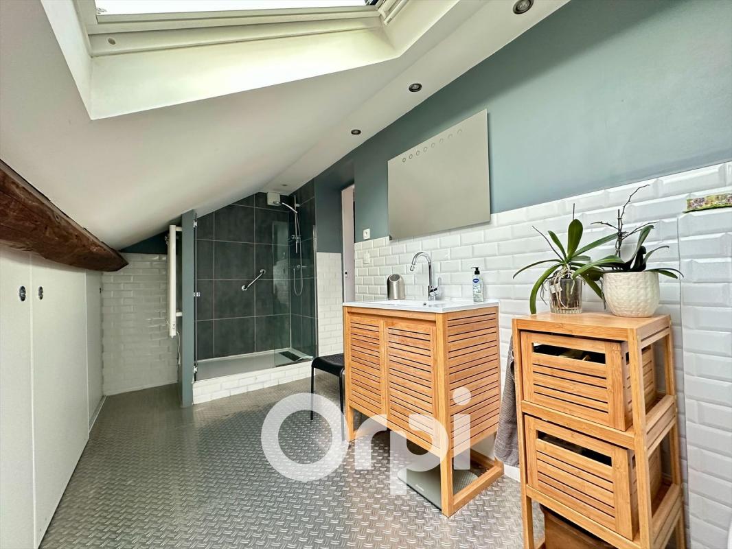 Les étages supérieurs abritent une salle d'eau moderne, deux chambres spacieuses dont une avec un grand dressing.