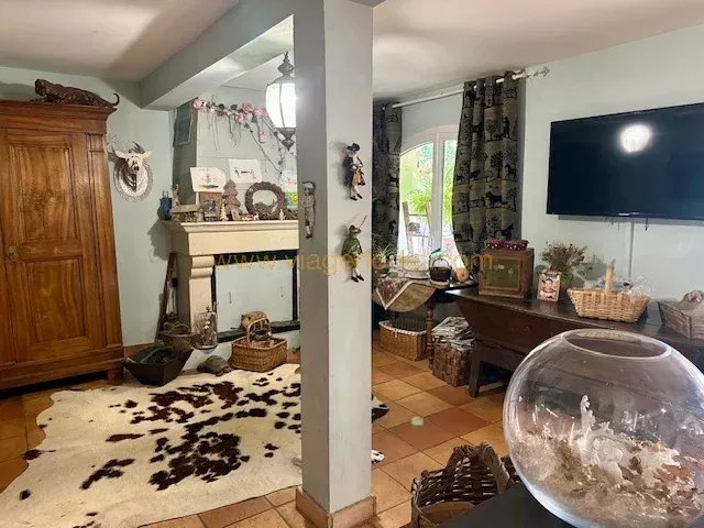 Sur les hauteurs, à flanc de montagne, au sein d'un environnement de verdure, au calme absolu, dans une grande propriété, une agréable MAISON de deux appartements indépendants, 123 m², sur 3 niveaux, avec diverses dépendances et une piscine sur un terrain de 5 000 m², elle se composée de comme suit :