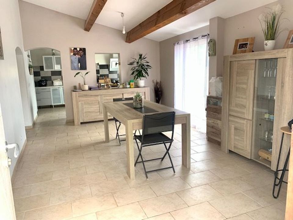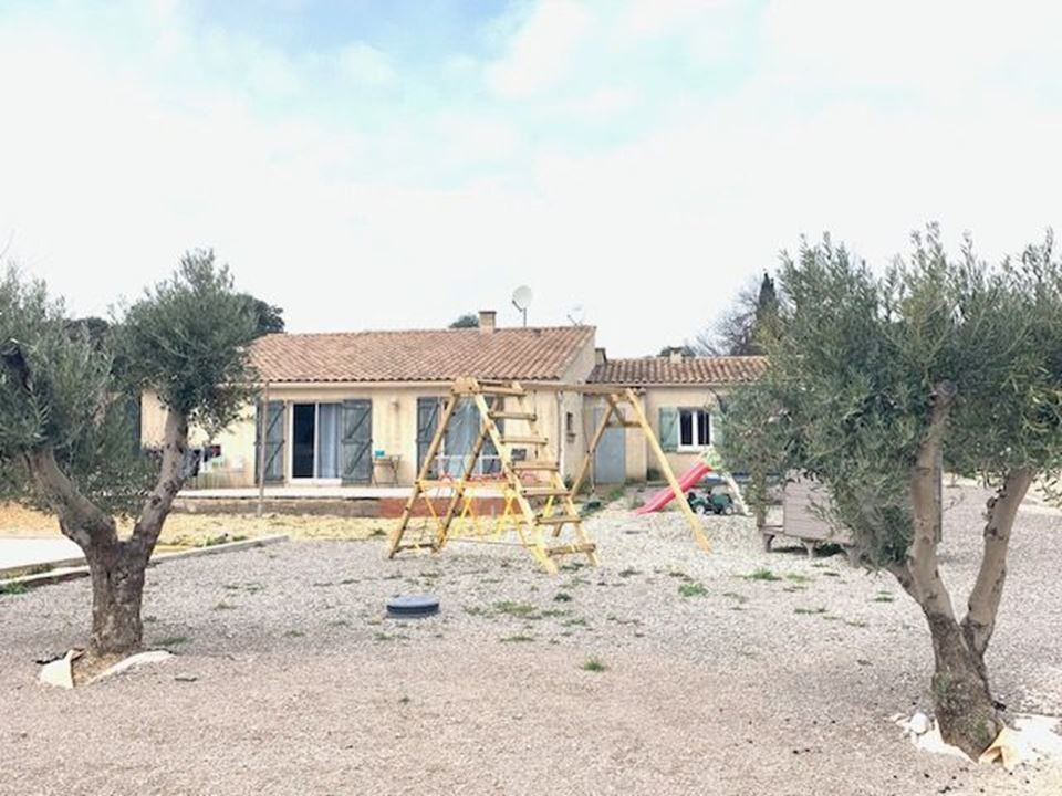 Construite sur un terrain plat et partiellement arboré de 5873 m², elle est entièrement de plain pied, composé d'un séjour donnant sur une grande terrasse, prolongé par une cuisine de 16 m² équipée, jouxtée par un salon, qui donne accès à une première chambre indépendante et à l'espace nuit qui comprend 2 chambres, une salle d'eau, une salle de bains et un bureau.