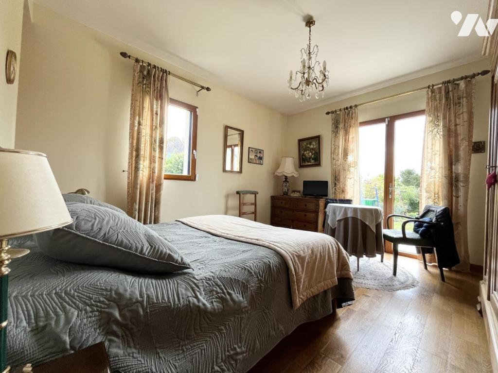- À l'étage : palier desservant wc, salle d'eau avec chaufferie, quatres chambres dont une avec salle d'eau et wc privatif, grand bureau.