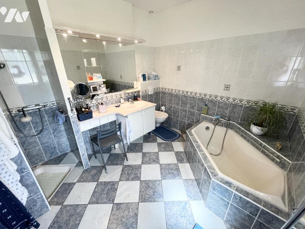 - au rdc : entrée avec placard, wc, cuisine, arrière cuisine, chambres, salle de bains et d'eau avec wc, salon/séjour avec cheminée insert a double vitres chauffant une salle à manger. Garage.