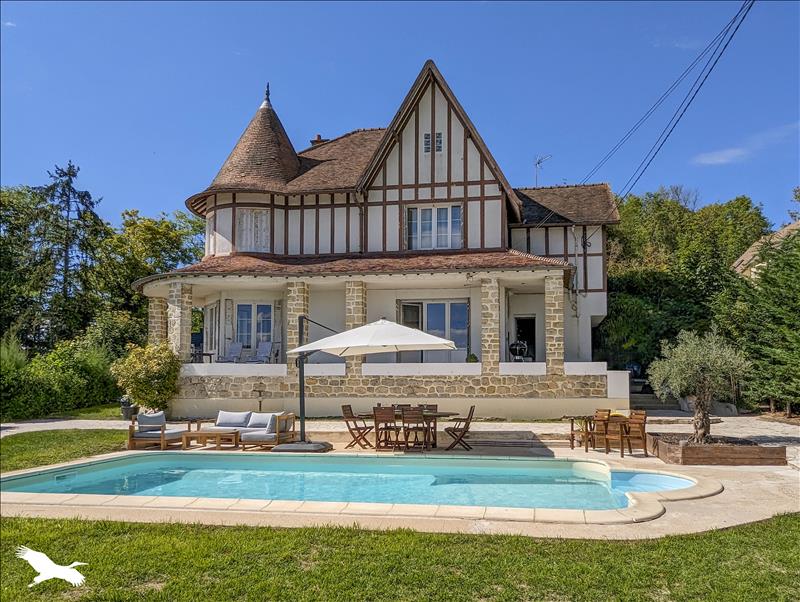 Une piscine chauffée, deux garages et des caves complètent ce bien rare et de caractère.