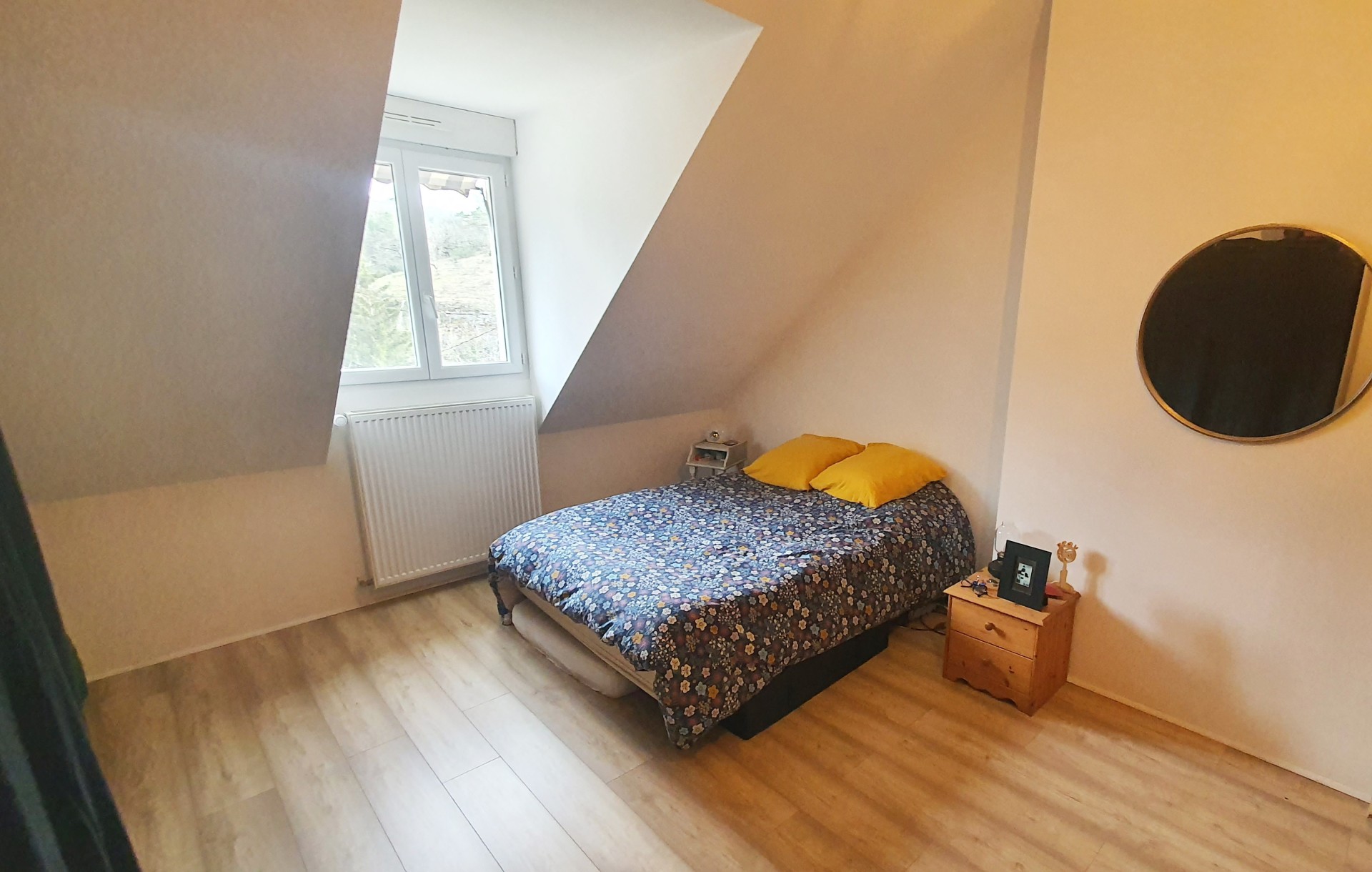 Sur ce même niveau, vous trouverez 2 chambres, une salle de bains et un WC.