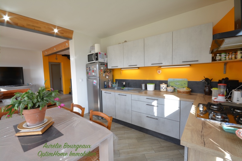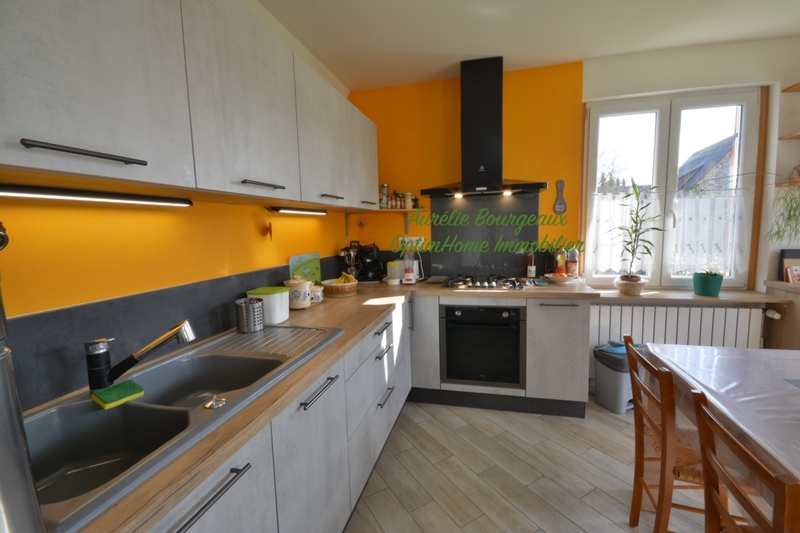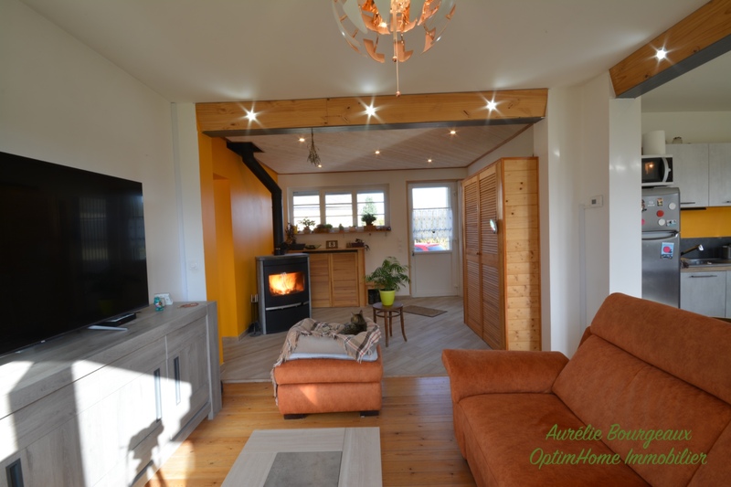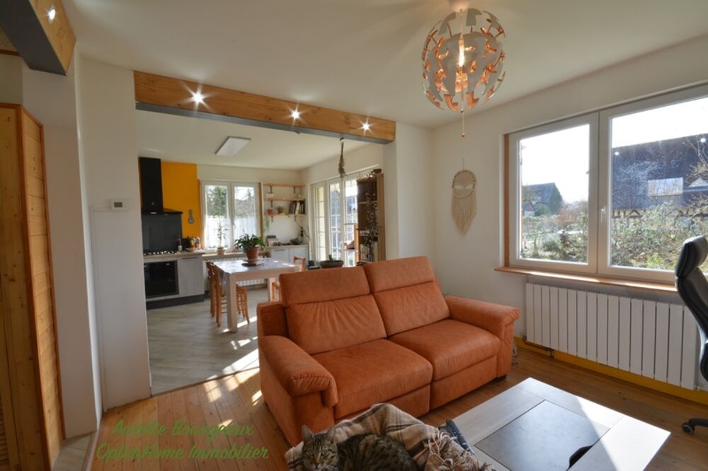 Pensée pour le confort et les économies, la maison dispose actuellement d'une surface habitable de 88 m2. Dès l'entrée, vous serez charmé par sa lumière et son intérieur à l'ambiance feutrée de "chalet normand". La pièce de vie offre un espace salon avec son poêle à bois à pierre ollaire et une cuisine aménagée et équipée ouverte sur le salon.