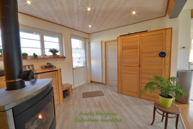 Lumineuse grâce à ses grandes ouvertures sur l'extérieur et son exposition plein sud, chaleureuse avec ses boiseries, parquets et son poêle à bois, ce bien est une invitation à la quiétude et au repos.