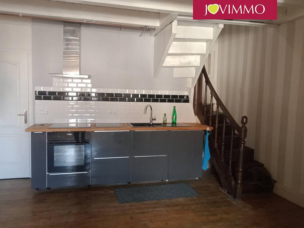 Au premier étage vous trouvez un salon / cuisine spacieuse avec poêle à bois avec un joli balcon pour les Roméo d'entre vous.