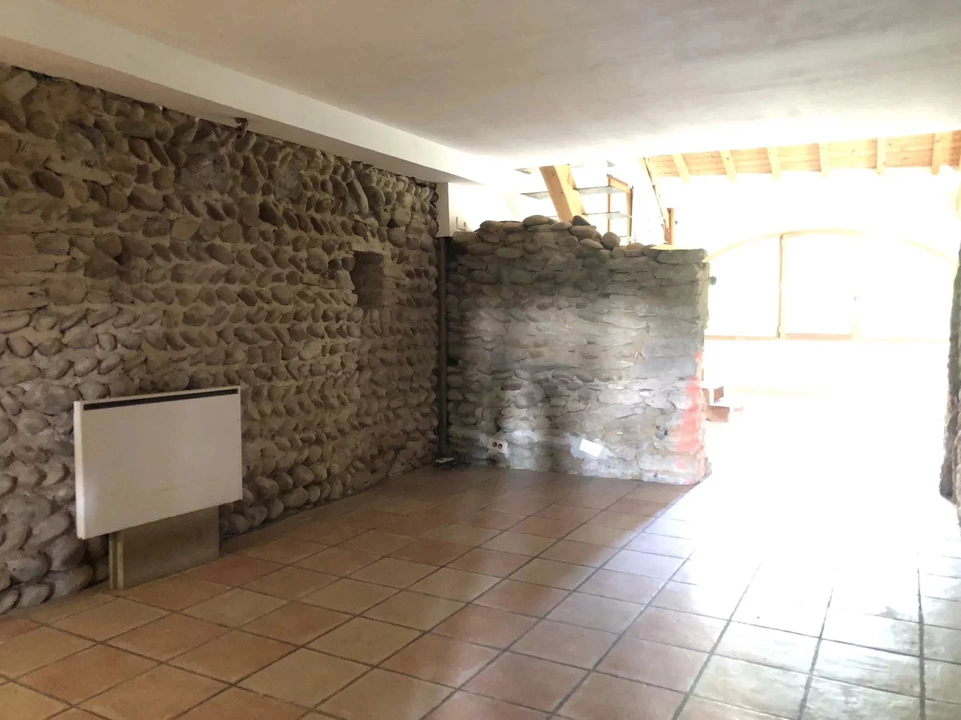Maison en pierre de 235m² habitable sur 2 niveaux composée au rez de chaussée d'un salon de 66.6m², une salle à manger, cuisine de 38m² environ, salle de bain avec wc et un hall d'entrée.