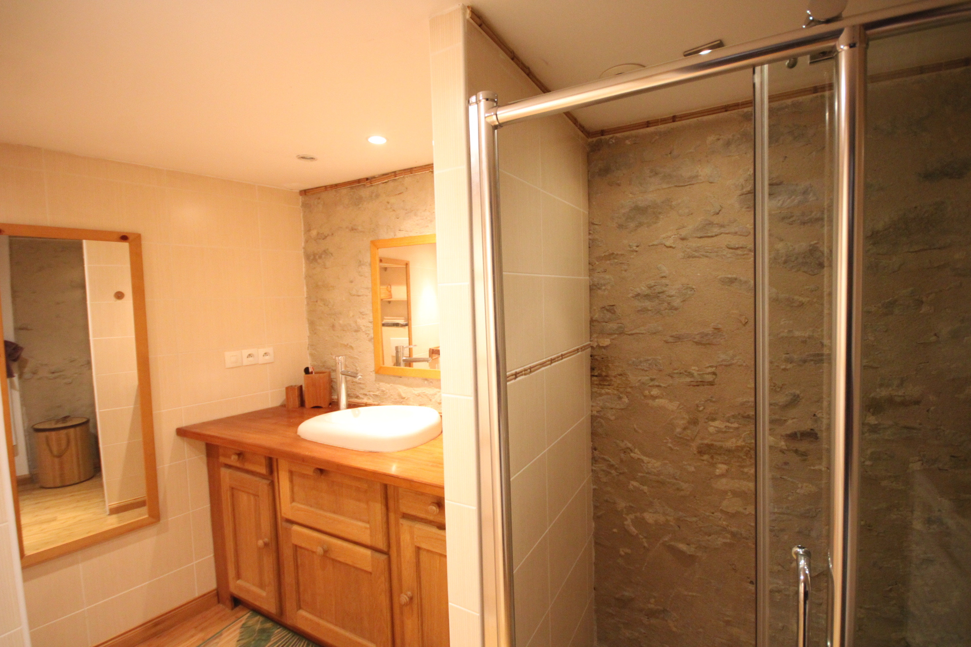 1er étage (rez de jardin) : cuisine équipée séjour salon ( 44m2 ) donnant sur terrasse et jacuzzi, 1 grande chambre avec dressing, 1 salle d'eau, 1 toilettes