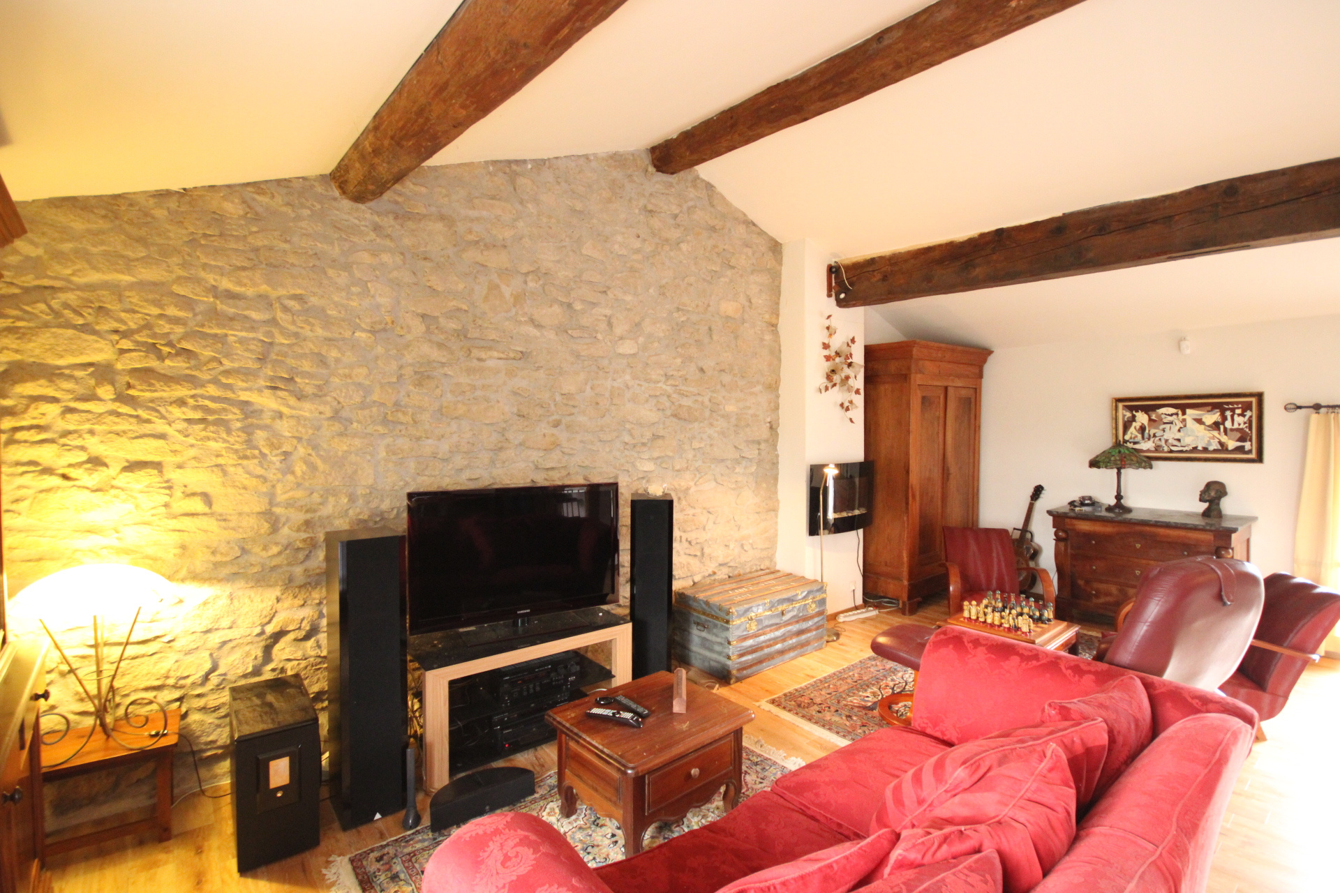 Maison en pierre rénovée mitoyenne d'un côté, d'une surface habitable de 110 m2 avec son jardin attenant de 350 m2